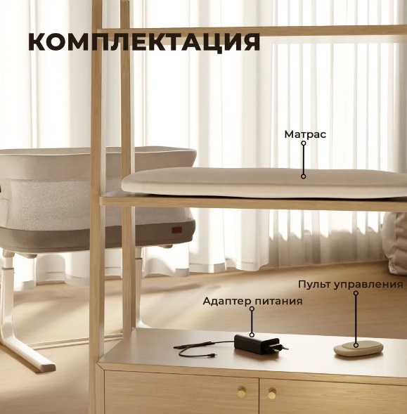 Комплектация: колыбель, матрасик с чехольчиком, пульт д/у, адаптер питания