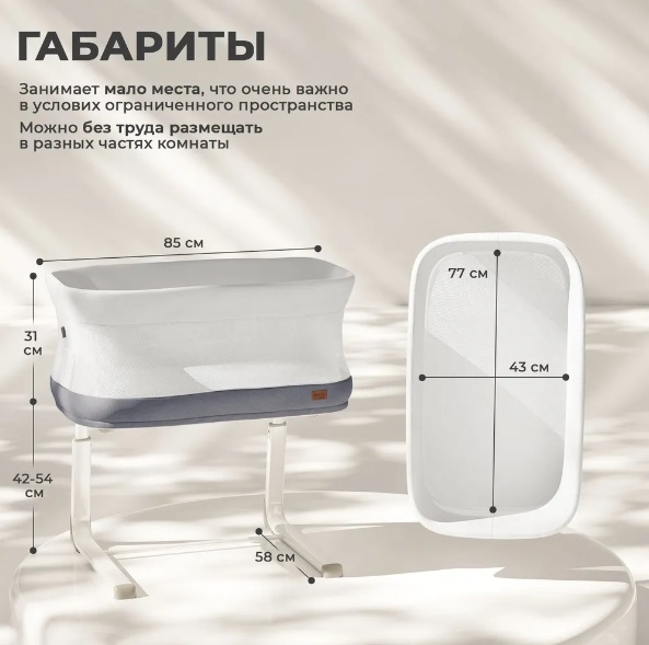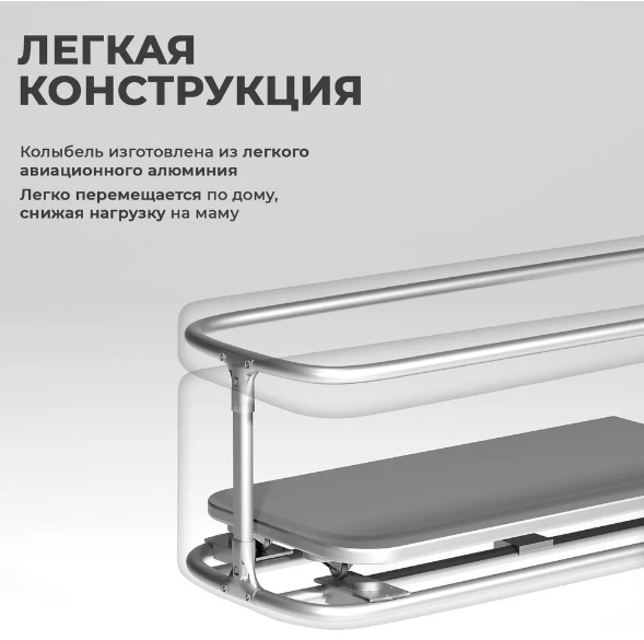 Практичность использования детской кровати для новорожденного обеспечивают устойчивые прорезиненные «Г»-образные ножки. Благодаря такой форме взрослым легко вплотную подойти к колыбели, а саму колыбель — использовать как приставную кроватку.