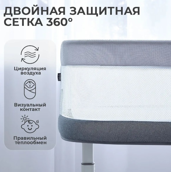 При этом ребенок может в любой момент увидеть маму и не беспокоиться: тканевый корпус выполнен из двойной сетки, которая позволяет малышу и маме сохранять визуальный контакт. Дополнительное преимущество такого материала — естественная вентиляция и правильный теплообмен, которые гарантируют постоянный доступ свежего воздуха. Двойная сетка обеспечивает дополнительный слой защиты и исключает риск защемления.