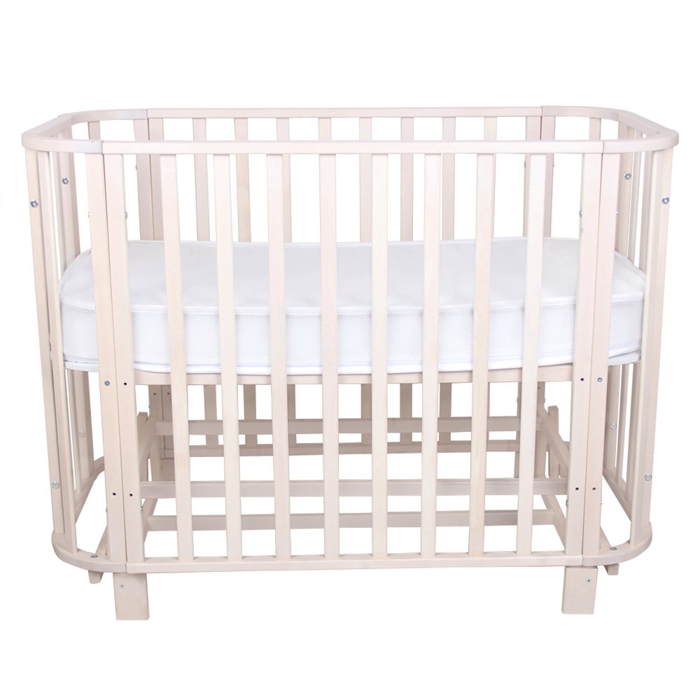 Кровать Indigo ЭЛИПС с маятником - Красивая кроватка из березы для ребенка с рождения до 3-4 лет. Модель имеет просторное спальное ложе размеров 120х60 см, которое регулируется по высоте в 2-х положениях. Кровать не имеет острых углов, а рейки расположены на безопасном расстоянии друг от друга. Дно спального места реечное, ортопедическое, что гарантирует улучшенную вентиляцию матрасику ( в комплект не входит). У кроватки предусмотрен маятник поперечного качания, который поможет плавно укачать малыша в кровати без маминых рук, а так же пролит сон ребенка. При необходимости маятник надежно фиксируется.