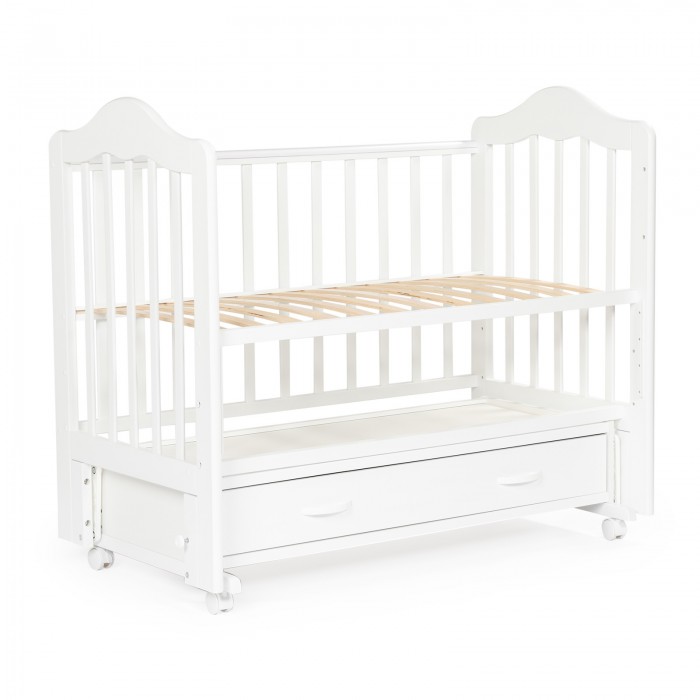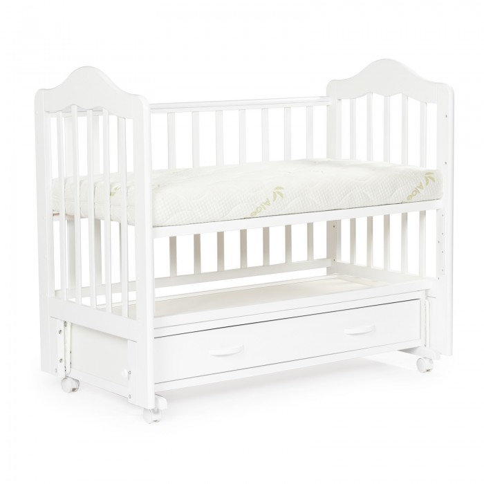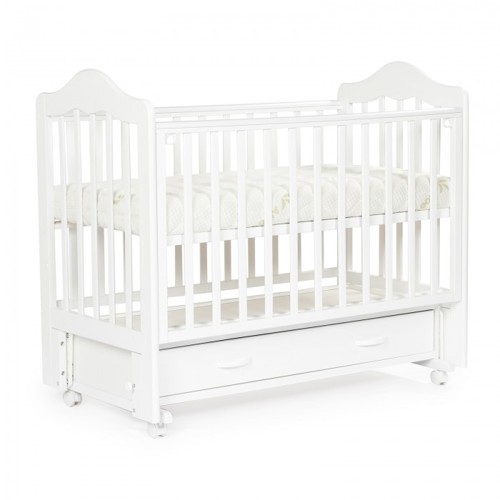 Кровать BEBIZARO FILLMORE с маятником на колесах и ящиком (Бебизаро Филлморе) - функциональная кровать со стандартным спальным местом 120 на 60 см. У кроватки регулируется высота спального ложа, а передняя стенка регулируется по высоте. Для уже подросшего ребенка переднюю стенку можно полностью снять превратив кроватку в диван. Так же такую модель можно использовать как приставную кровать к взрослой.