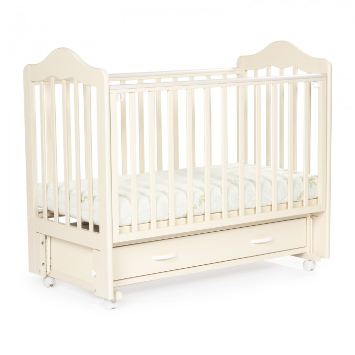 Модель выполнена из массива березы, она полностью натуральна и экологична. В кроватке предусмотрены все необходимые регулировки для удобного использования родителями и безопасного сна ребенка. Уровень матрасика регулируется по высоте, передняя спинка снимается или опускается.
