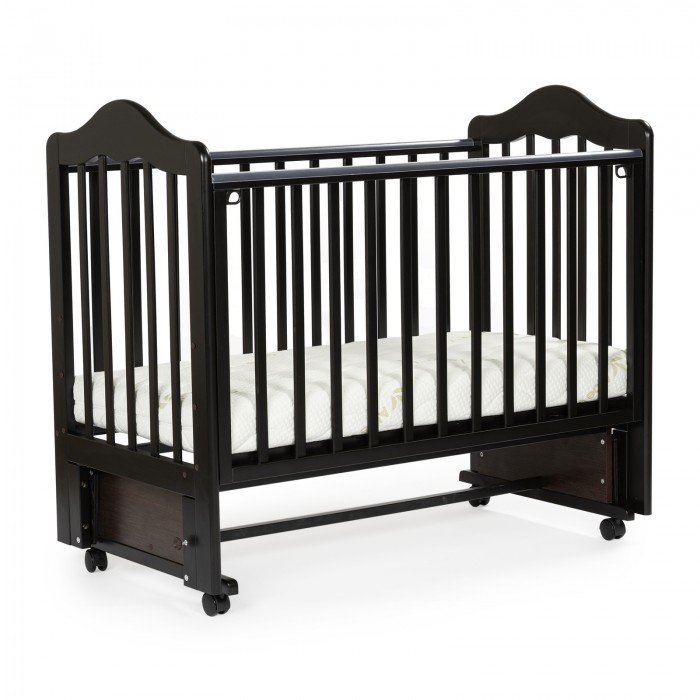 Модель выполнена из массива березы, она полностью натуральна и экологична. В кроватке предусмотрены все необходимые регулировки для удобного использования родителями и безопасного сна ребенка. Уровень матрасика регулируется по высоте, передняя спинка снимается или опускается.