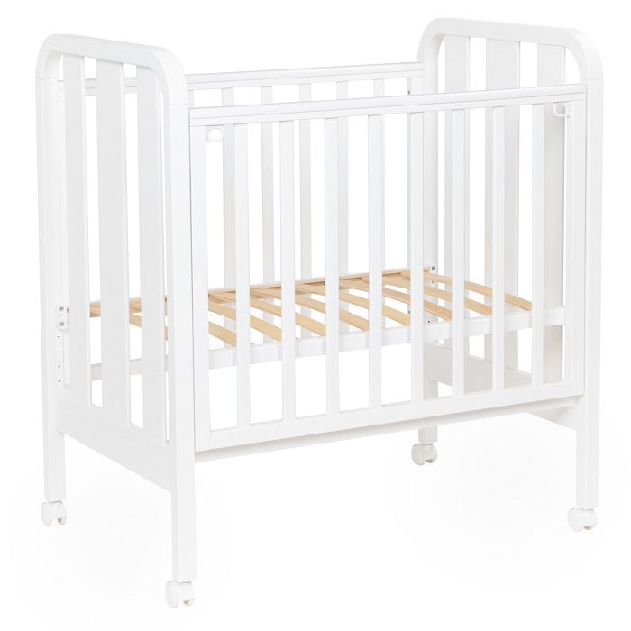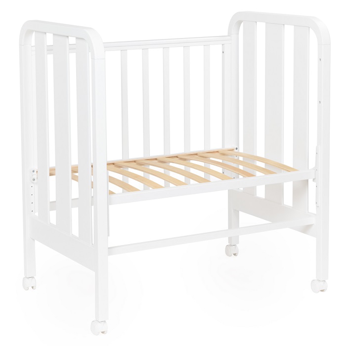 Это функциональная кроватка, продуманная до мелочей, это максимальный комфорт и безопасность для вашего малыша. Каркас кроватки выполнен из массива берёзы. Для удобства родителям, боковая стенка кроватки регулируется по высоте. Модель оборудована колёсами для её перемещения по комнате.