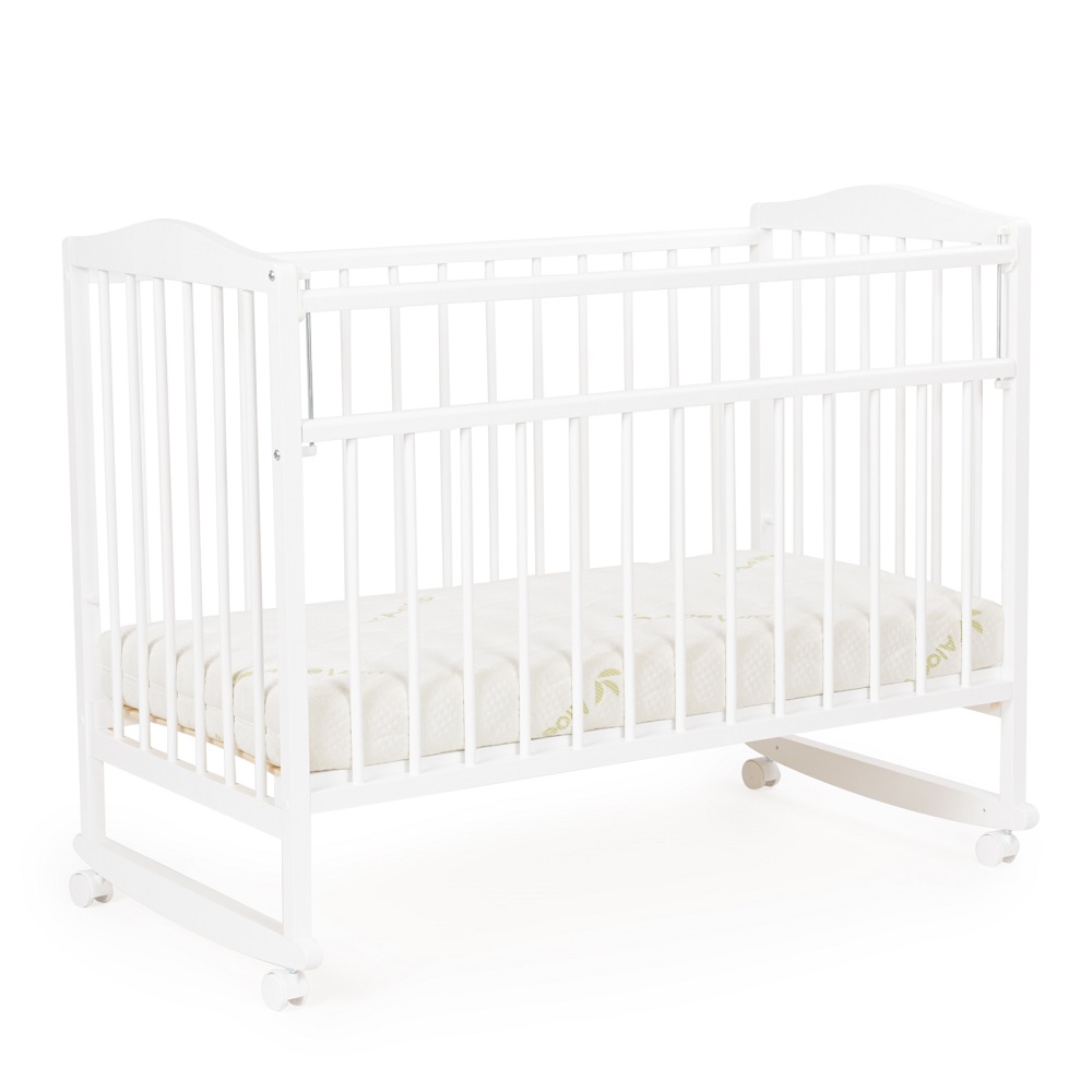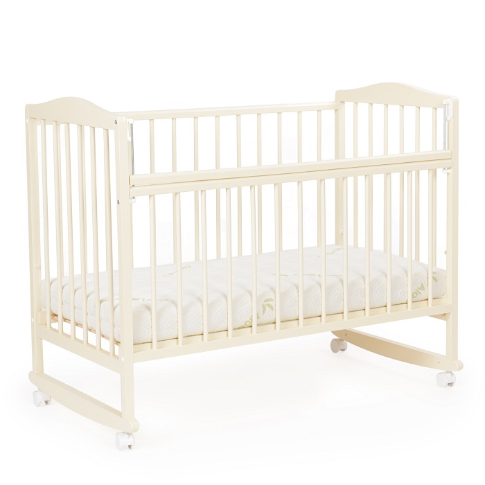Детская кровать BEBIZARO NEAT колесо - качалка (бебизаро нит) - коассическая кроватка для ребенка с рождения до 3 лет. Кроватка оснащена функцией укачивания из стороны в сторону с помощью специальных полозьев. Дополнительно кровать оснащена колесами, которые зафиксируют функцию качания и сделают кроватку мобильной. Для удобства родителей спальное ложе регулируется по высоте, а передний бортик опускается. Ложе выполнено из реек, что обеспечит оптимальную вентиляцию матрасика.