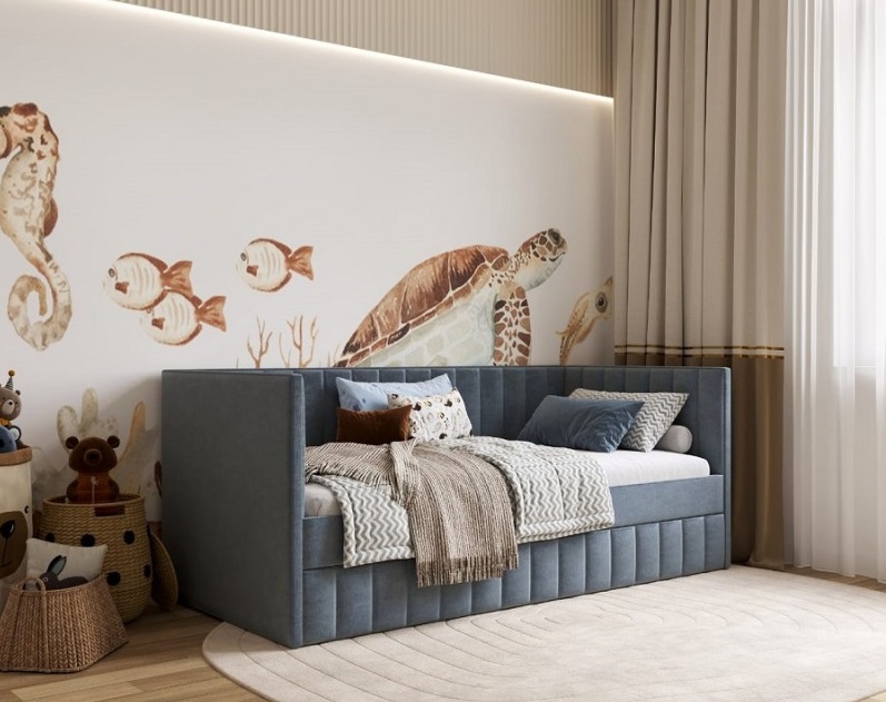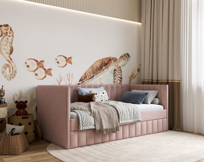 Мягкая спинка и боковые бортики надежно защитят ребенка от сквозняков, холодной стены и создадут комфортный оазис для игр, чтения книг и, конечно, для сна. Просторное спальное место 160х80 см (есть 180х90 см+1000 руб).