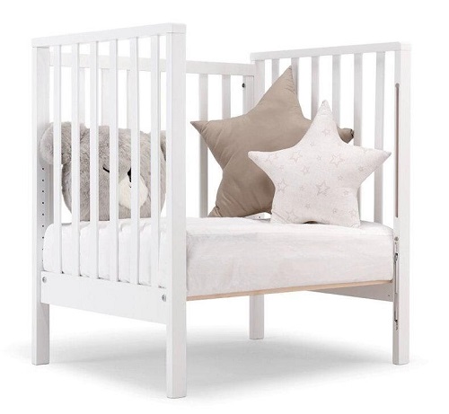 - Сняв колеса и боковину, ее можно превратить в кровать Монтессори.
