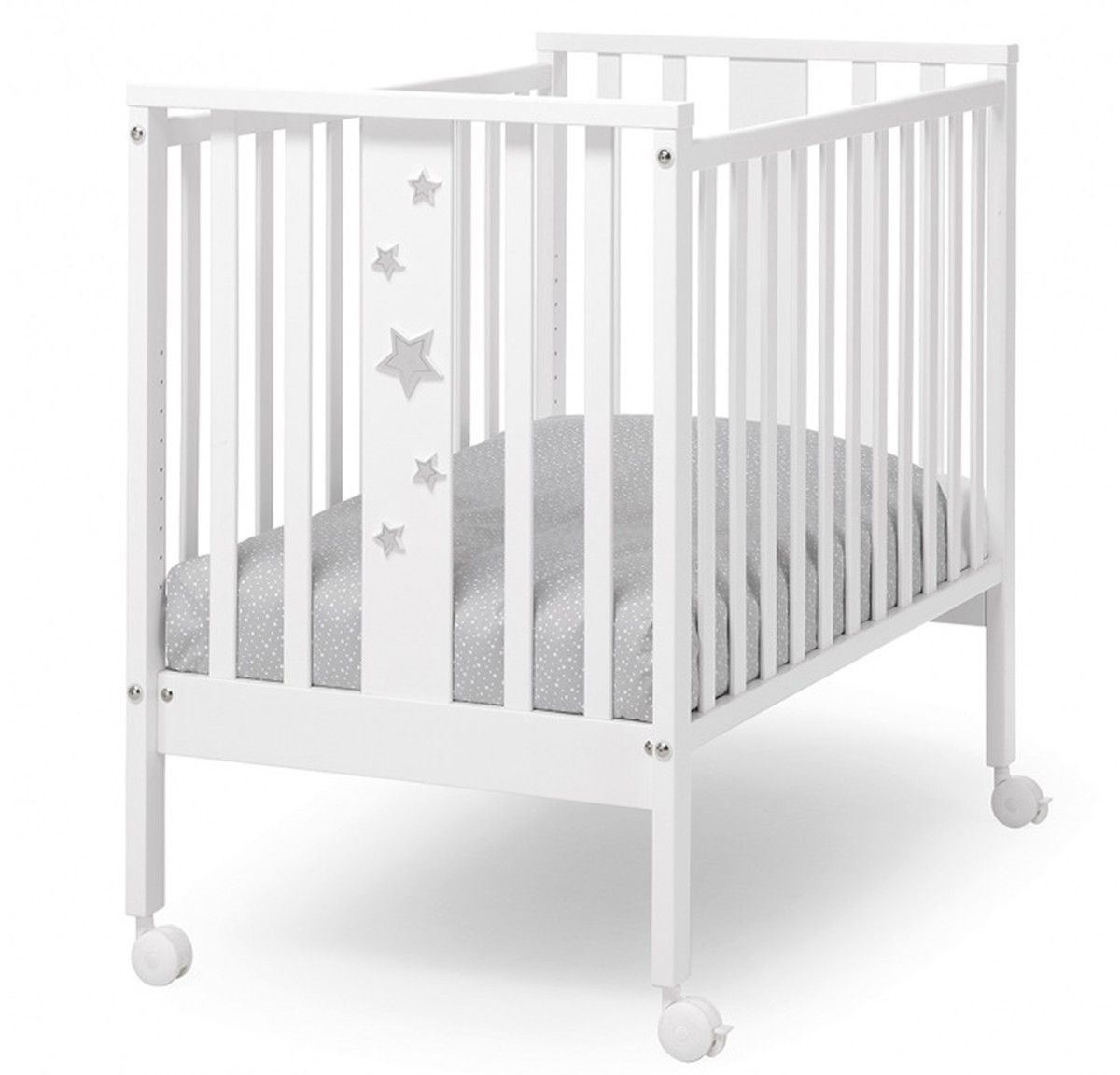 Детская кровать Erbesi Stellina 110х65,5 мини (Ербеси Стеллина) - красивая и удобная кроватка для новорожденного ребенка, выполненная из массива бука. Кроватка отличается своим лаконичным дизайном с декоративными элементами в виде звездочек и компактными размерами, благодаря чему прекрасно подойдет как мобильная колыбелька, переставная кроватка, приставная кроватка к взрослой кровати.