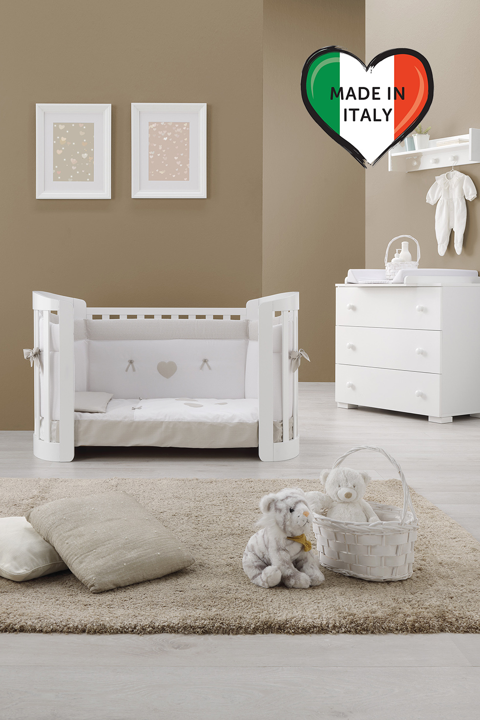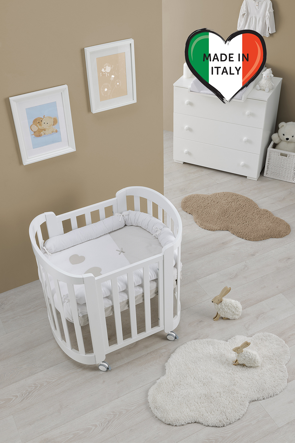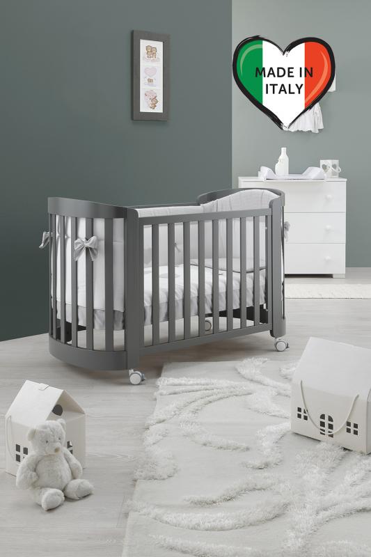 Детская кровать Erbesi Sweet 3 в 1 (Эрбеси свит) - премиальная итальянская кроватка для ребенка с рождения до 5 лет, выполненнная из массива бука и уже с двумя матрасами в комплекте.