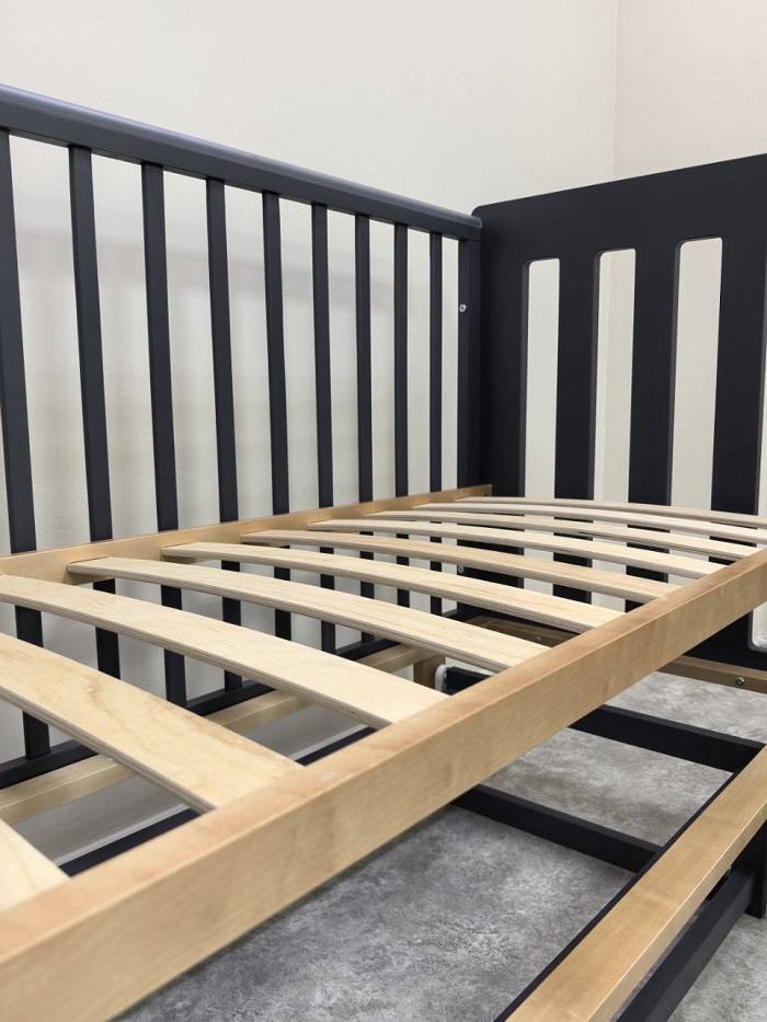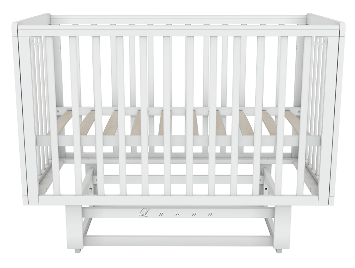 Кровать Lunna CHARM имеет реечное основание с возможностью регулировки в 4 положениях по высоте. Передний бортик легко регулируется по высоте или полностью снимается (автостенка), что позволит использовать кроватку, как приставную или диванчик. Для защиты детских зубов на бортиках предусмотрены ПВХ накладки.