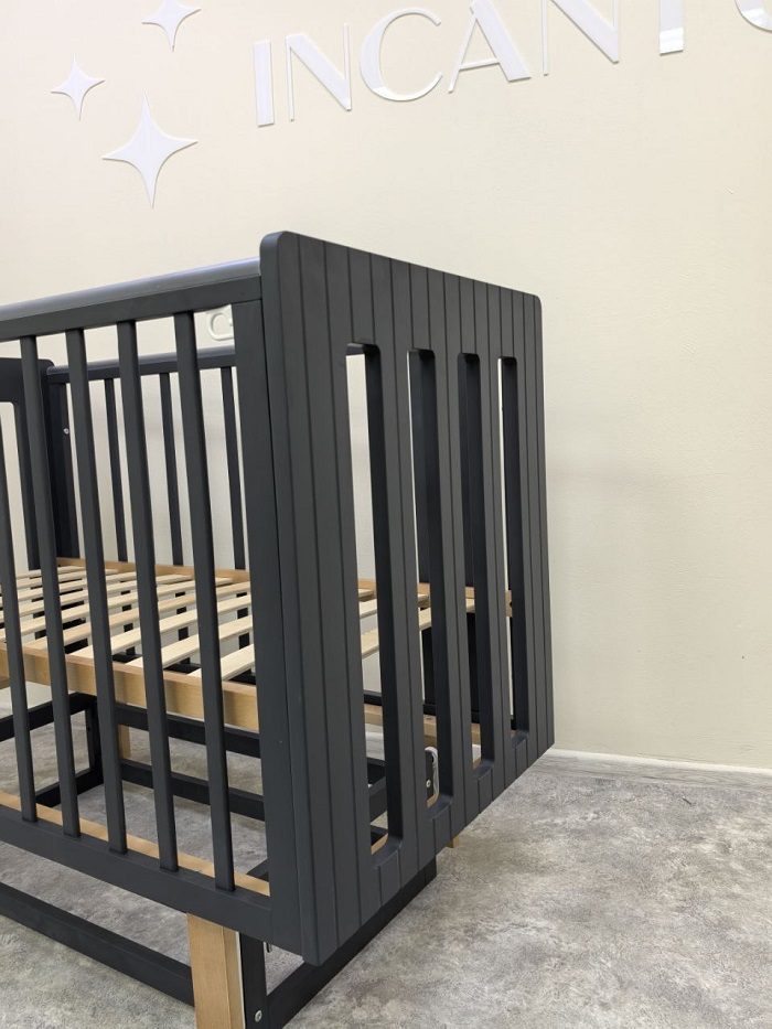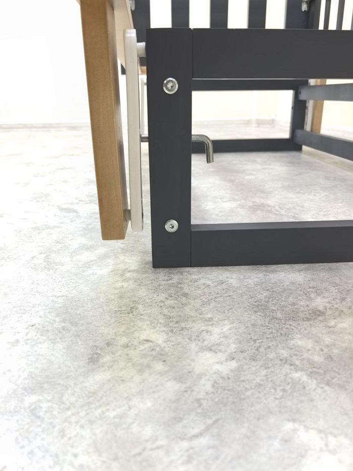 Продольный маятник на колесах позволит превратить кроватку в укачивающий центр, который позволит успокоить ребенка, настроить на сон, сделать сон спокойнее и крепче. Колеса позволят легко передвигать кроватку по квартире, комнате.