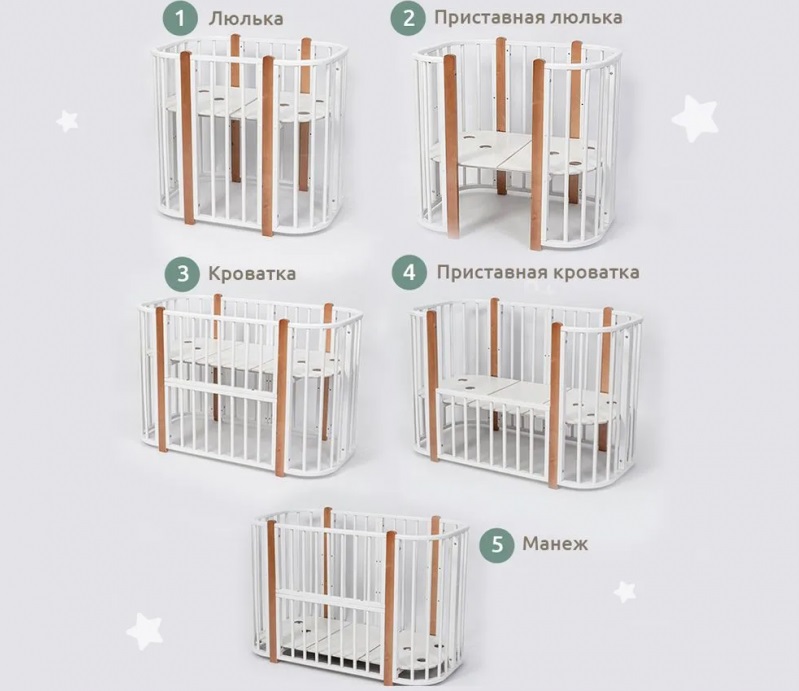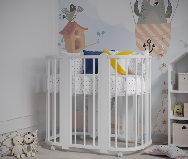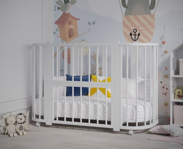- Кроватку можно трансформировать в манеж и диванчик для подросших малышей.