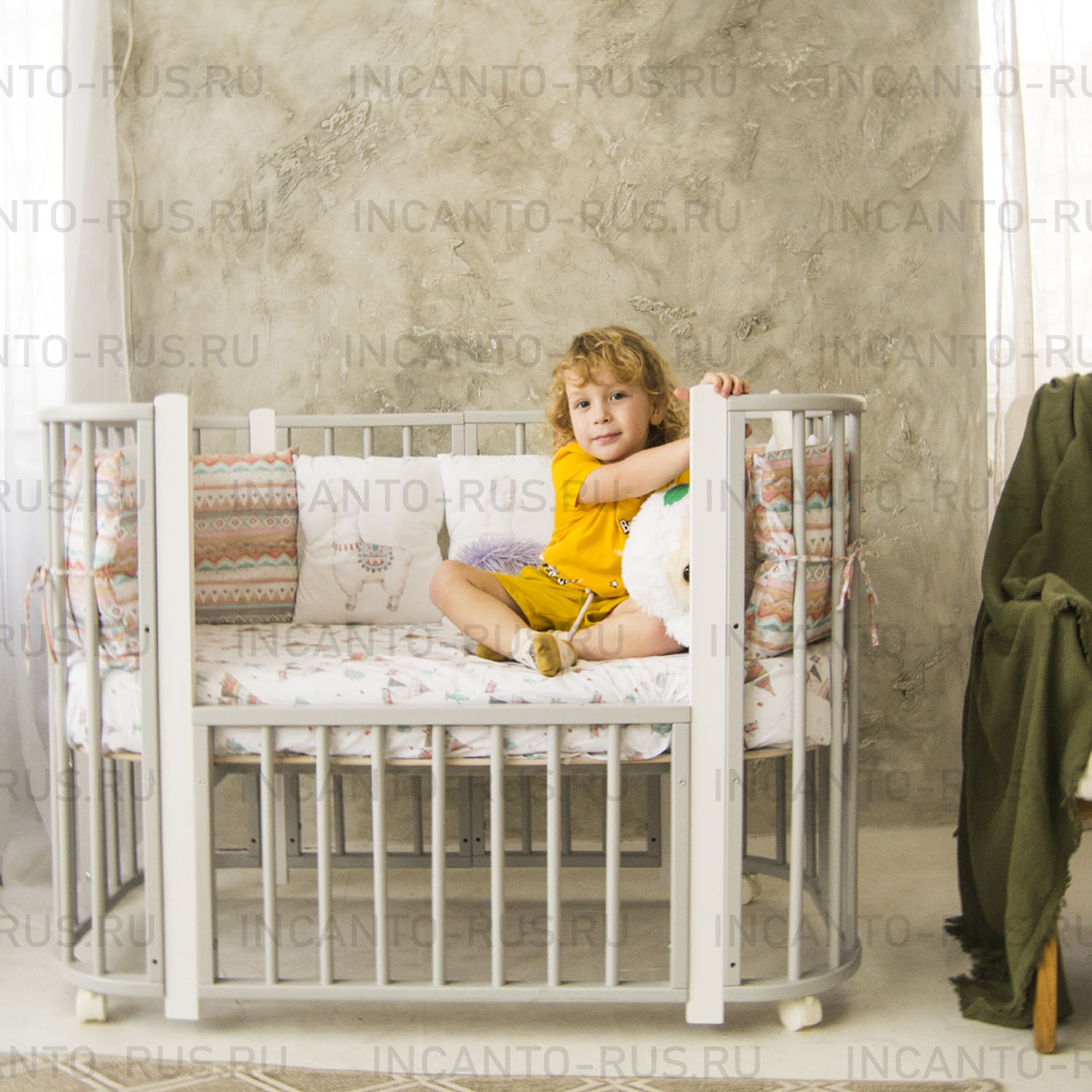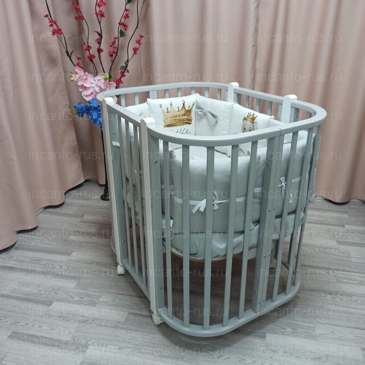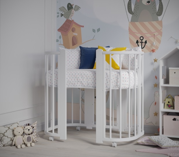 - Кроватку можно трансформировать в манеж и диванчик для подросших малышей.