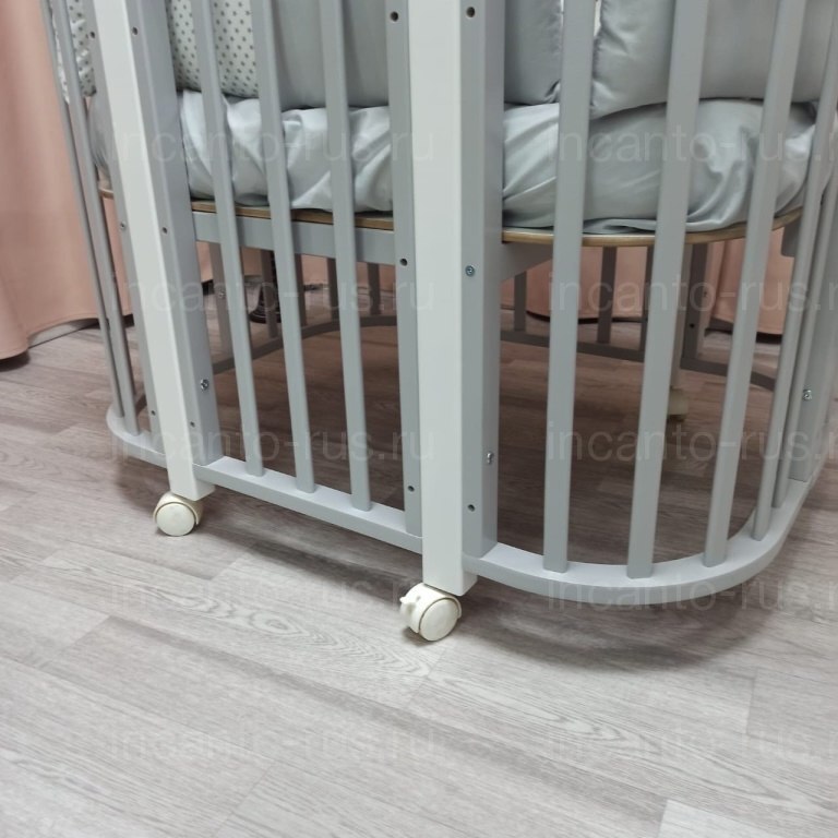 Кроватка может быть с круглыми или плоскими ламелями, уточняйте у менеджера.