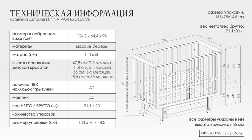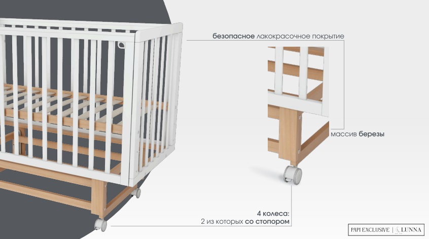 Детская кровать Incanto PAPI EXCLUSIVE (Инканто папи эксклюзив) - обновленная версия кроватки 2025 года с повышенный функционалом. Современная, стильная кровать для ребенка с рождения до 3-4 лет, дополненная маятником с колесами и съемными рейками. Идеальное сочетание простоты, функционала и качественных материалов.