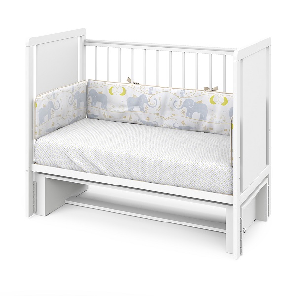В модели предусмотрены три положения ложа по высоте (верхнее — 55,2 см, среднее — 45,6 см, нижнее — 36 см от пола), что позволяет адаптировать кроватку к возрасту ребёнка и облегчает родителям доступ к малышу. Кроватка оснащена опускаемой боковиной и ПВХ-накладками "антигрыз". Рекомендуемый размер матраса: 120×60 см, высота — 8–12 см.