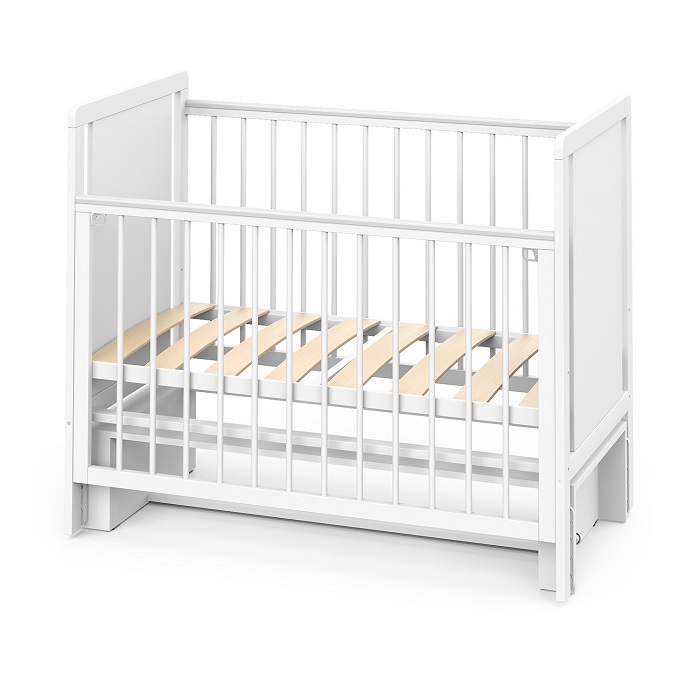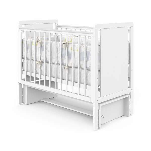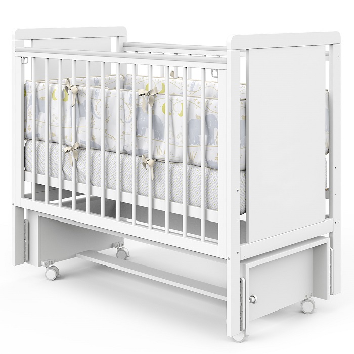 Кроватка изготовлена из массива берёзы и ЛДСП, все детали проходят строгий контроль качества. Благодаря маятниковому механизму и комплекту поворотных колёс со стопорами, кроватку можно легко перемещать по комнате или фиксировать на одном месте для безопасного укачивания малыша.