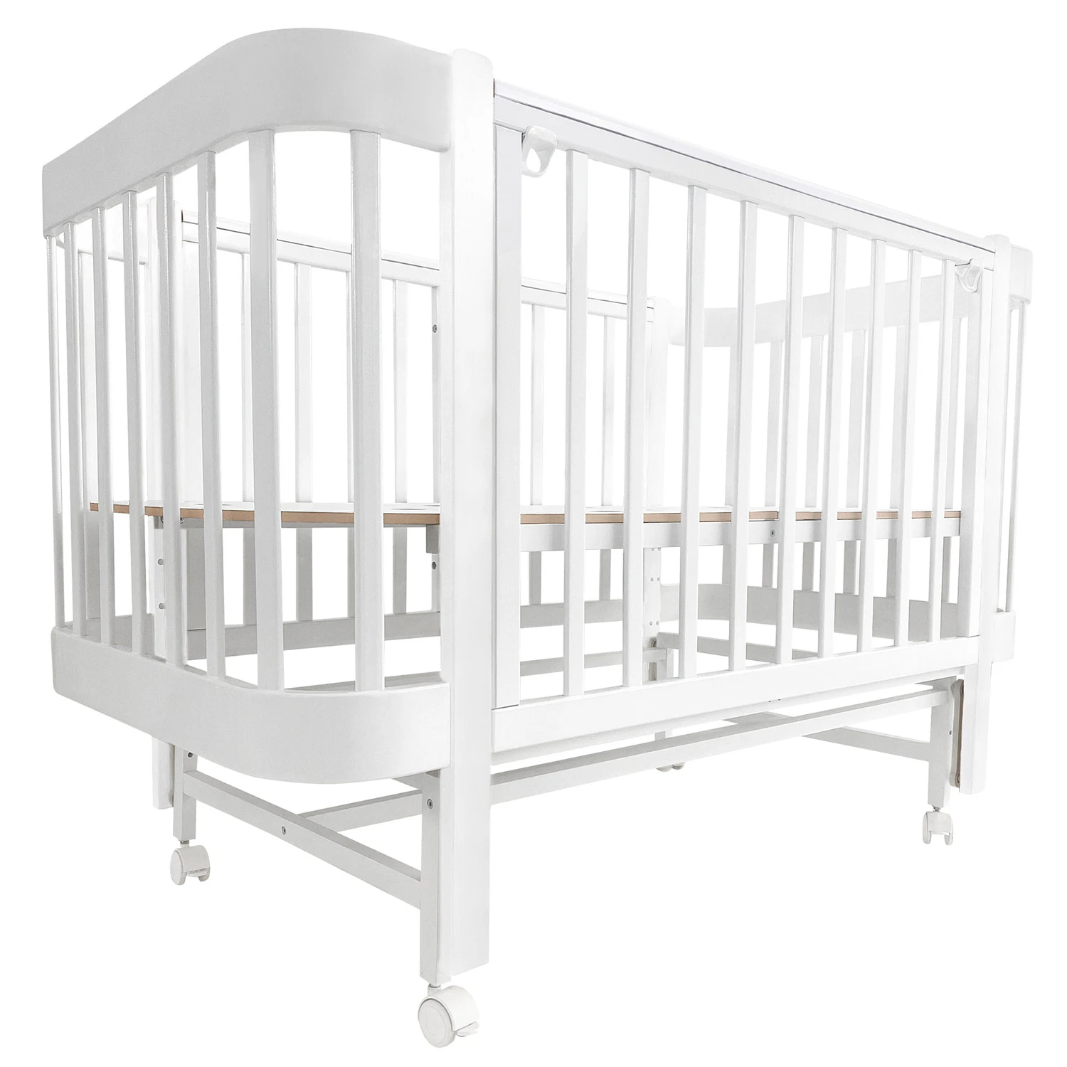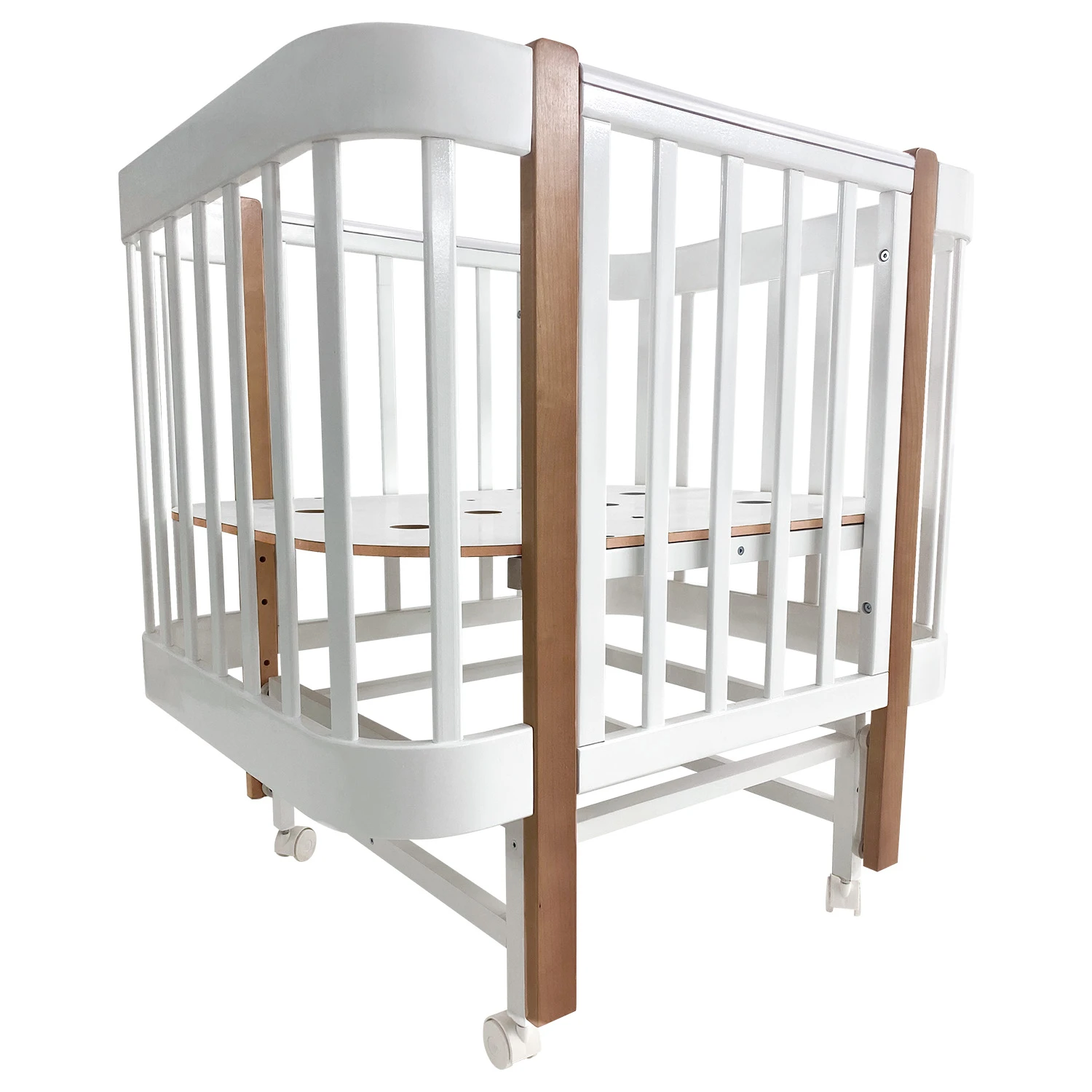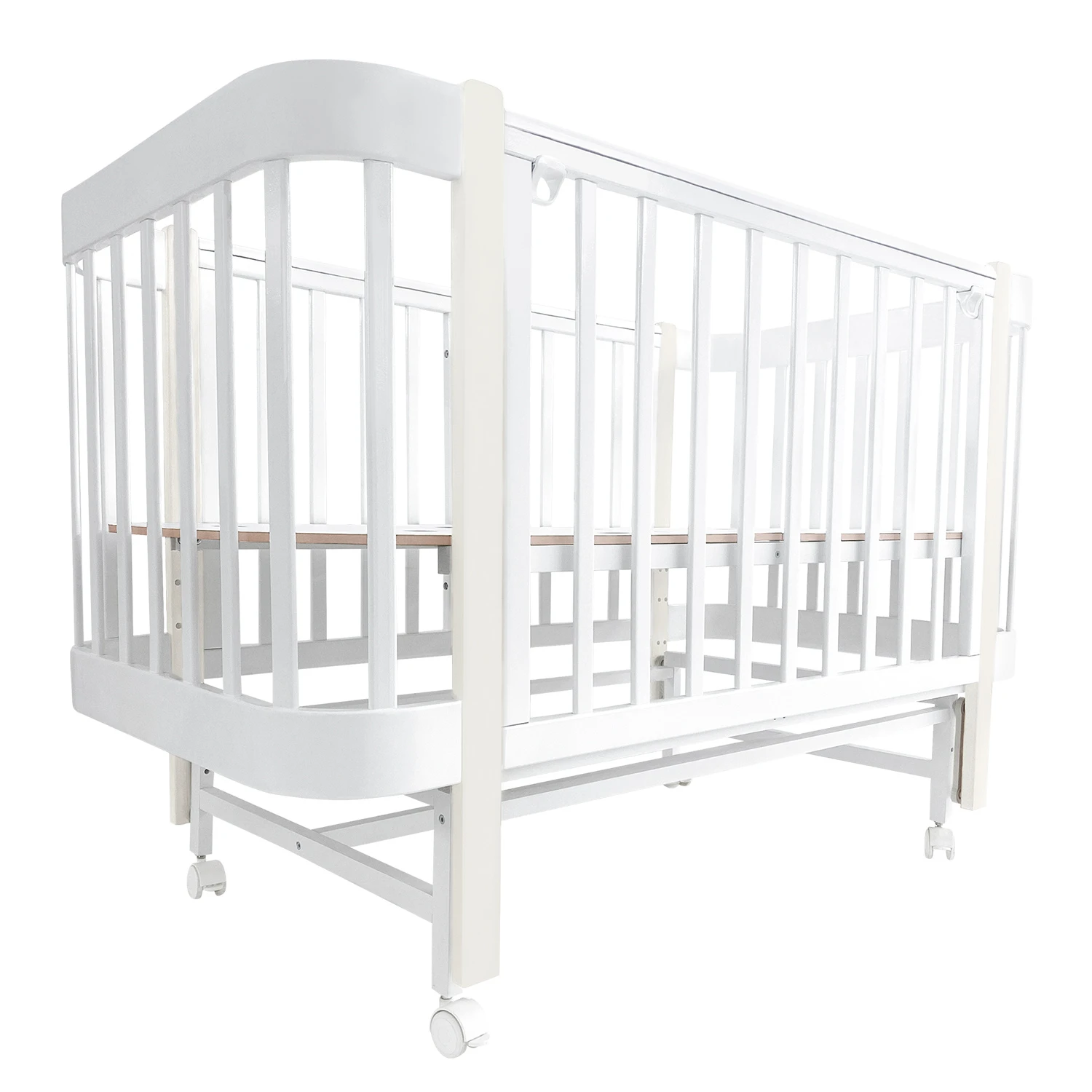 В комплекте с кроваткой идут колеса и продольный маятник. Кроватку можно устанавливать как отдельно с колесами или с маятником, так и маятник с колесами одновременно. Продольное качание позволит родителям более быстро успокаивать и укладывать ребенка на сон.