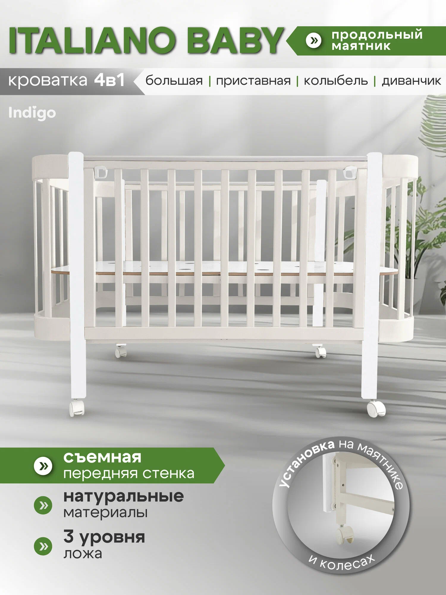 Детская кровать Indigo Italiano Baby (индиго итальяно беби) - современная кроватка для ребенка с рождения до 4 лет с утонченным дизайном и большим функционалом.