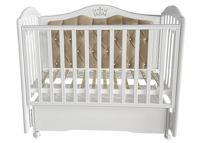 Кровать Кедр Эмили4 (Emily4) - кроватка для ребенка с рождения до 3-4 лет с мягкой задней стенкой обитой велюровой тканью и фрезировкой с изображением короны. Кроватка оснащена универсальным маятником, что позволит Вам собрать кроватку с функцией продольного либо поперечного качания в зависимости от того, как это требуется.