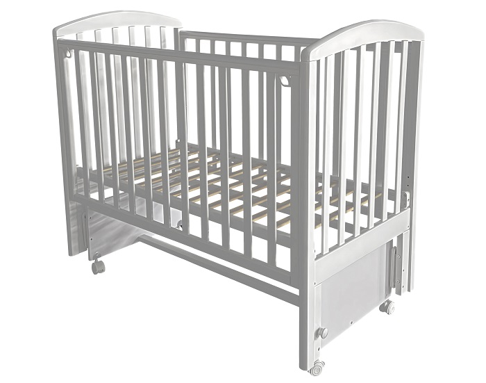 Универсальный маятник позволит настроить продольное или поперечное качание в зависимости от ваших предпочтений. Колеса, установленные на маятник, позволят легко переставлять кроватку по комнате. При необходимости и колеса и маятник блокируются.