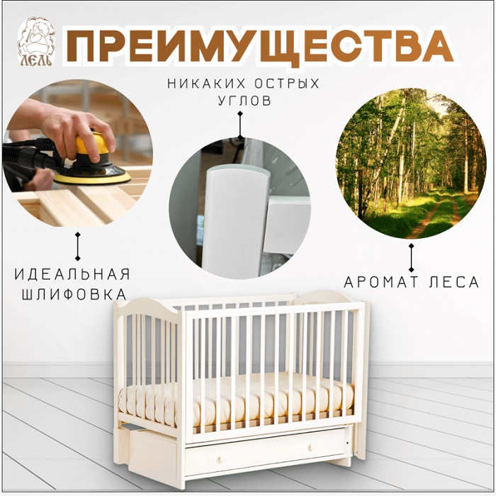 - ПВХ накладки на бортики, защитят ребенка от соприкосновения с деревом во время прорезывания зубов.