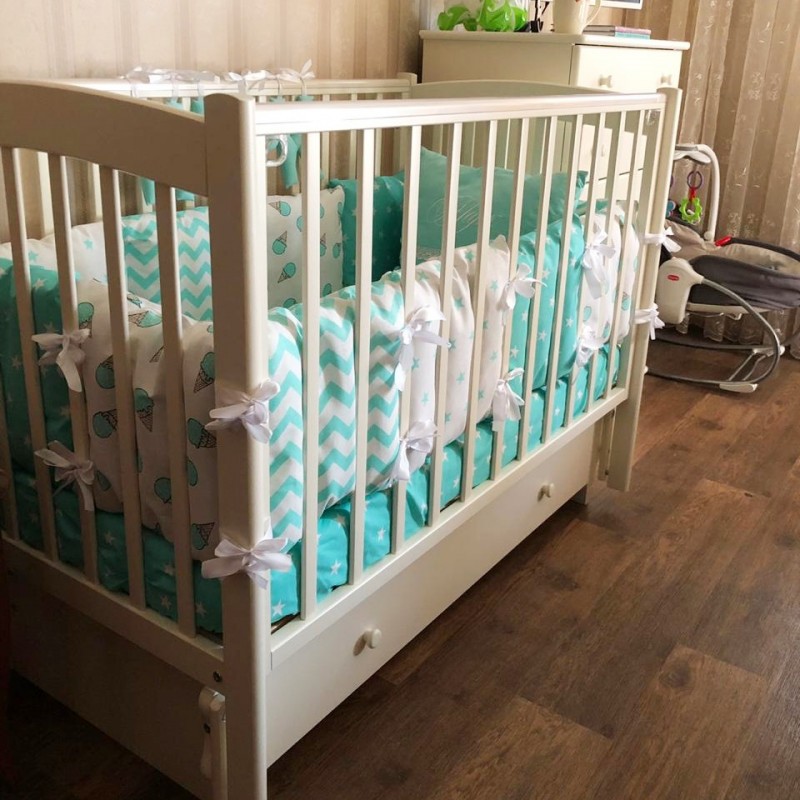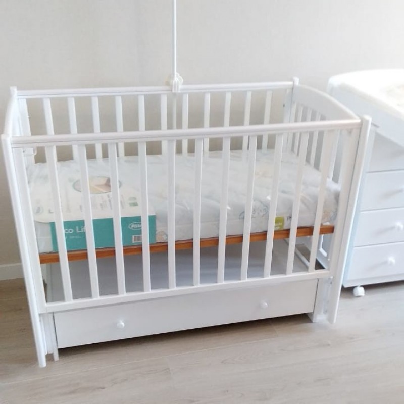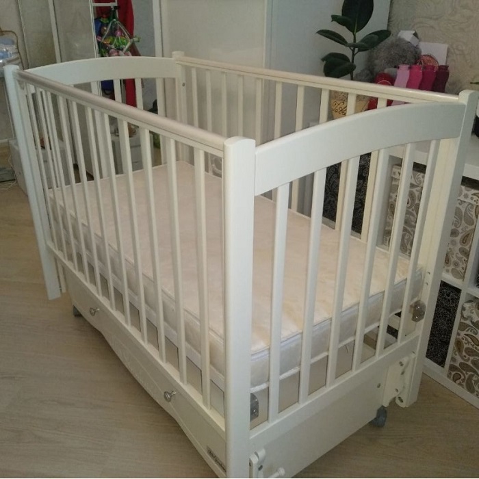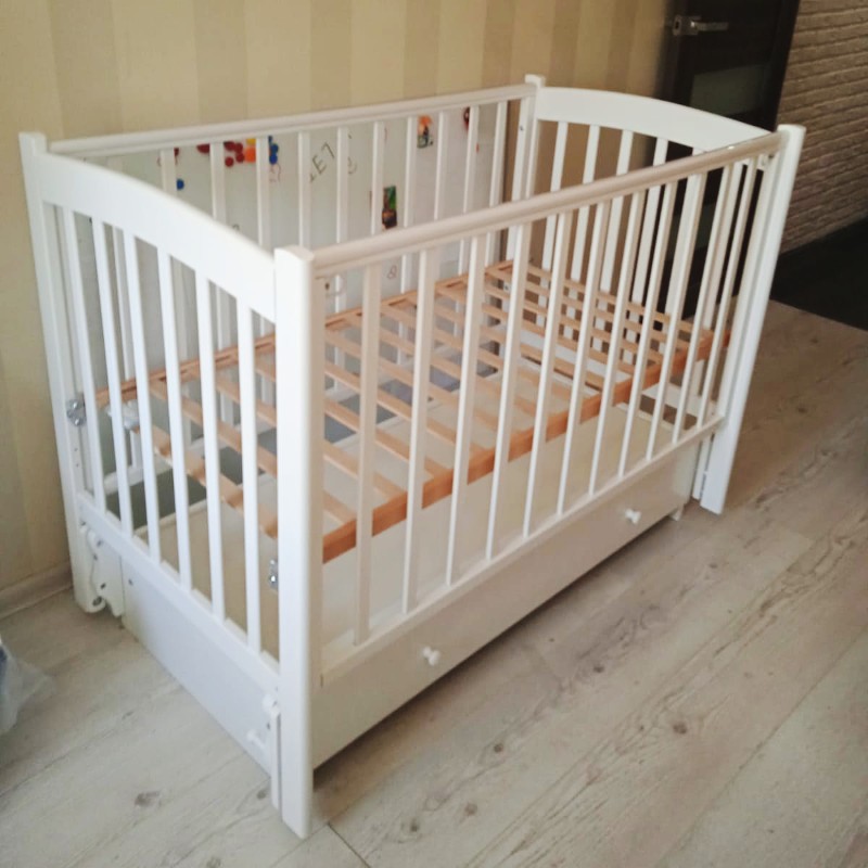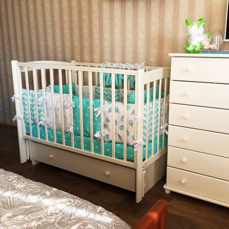Кроватка Кубаночка-3 оснащена закрытым ящиком. В таком ящике мама сможет удобно хранить постельное белье малыша, бортики, одеялки, конверты.