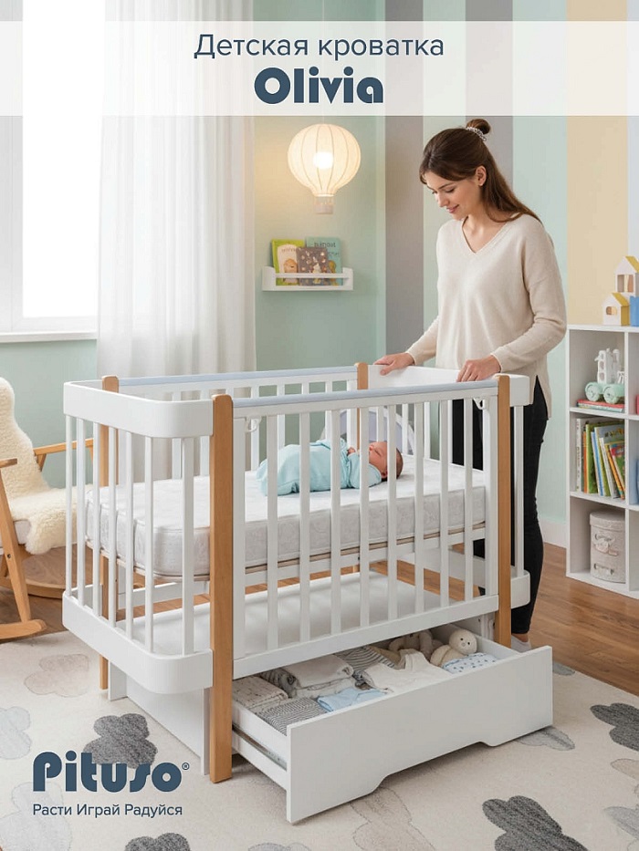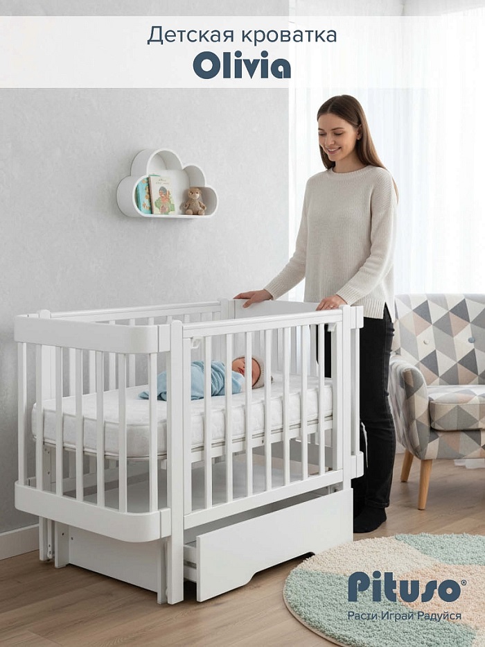 Детская кровать PITUSO Olivia (питусо Оливия) - стильная и практичная кроватка для ребенка с рождения до 4 лет со спальным местом 120х60 см. Кроватка имеет закругленные уголки и стильный дизайн, за счет чего смотрится дорого, оригинально и современно. Две топовые расцветки позволят легко вписать кроватку в любой дизайн и без проблем подобрать другие элементы детской мебели.