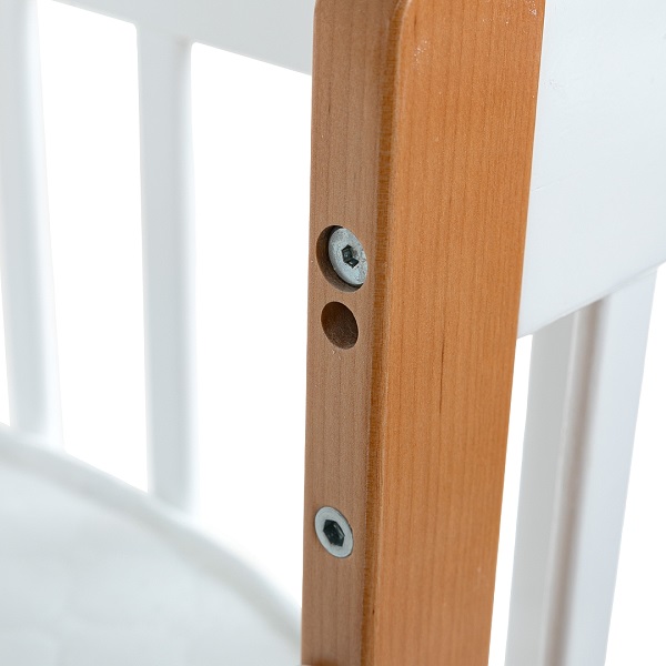 Кровать Питусо Оливия выполнена из массива березы, что гарантирует натуральность и экологичность кроватки. Кроватка из березы отличается прочностью и долговечность. Каждая деталь кровати тщательно обработана, чтобы избежать наличия острых углов. Покрыта только безопасными для ребенка материалами. Передний и задний бортик оснащены специальными накладками, которые уберегут зубки и десна ребенка от соприкосновения с деревом во прорезывания зубов.