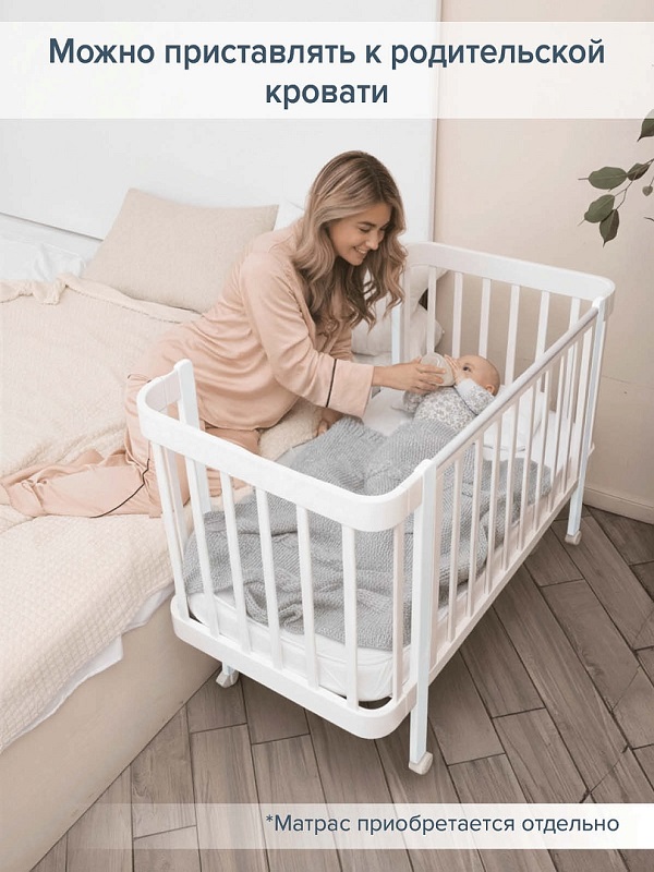 - Благодаря съемной авто-стенке, можно приставлять к родительской кровати.