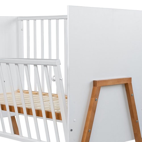 Кровать для новорожденного оснащена трехуровневым ложем, которое позволит настроить кроватку в зависимости от возраста ребенка (чем старше ребенок, тем ниже спальное ложе). Передняя стенка кроватки регулируется по высоте или полностью снимается, чтобы использовать кровать как приставную или диванчик.