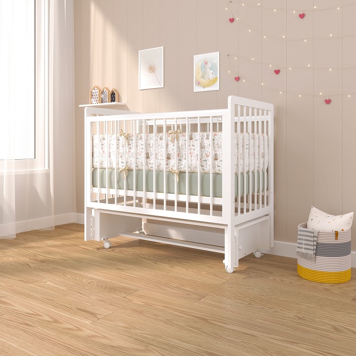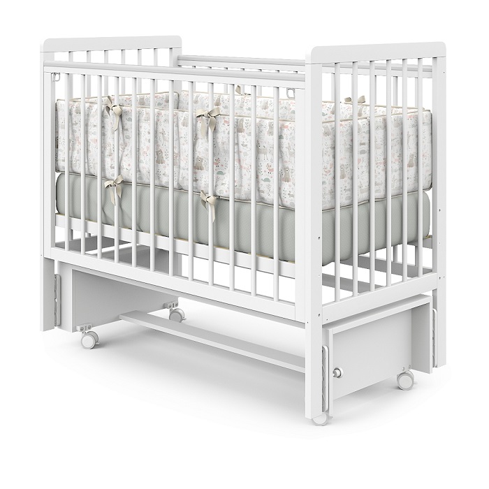Кроватка оснащена колесами и маятником. Колеса позволят легко перемещать кроватку по комнате. Колеса прорезиненные и бесшумные. Маятник продольного качания (голова -ножки) позволит помочь ребенку успокоиться, настроиться на сон и крепче спать, без укачиваний на ручках. Когда маятник не нужен, он надежно фиксируется.