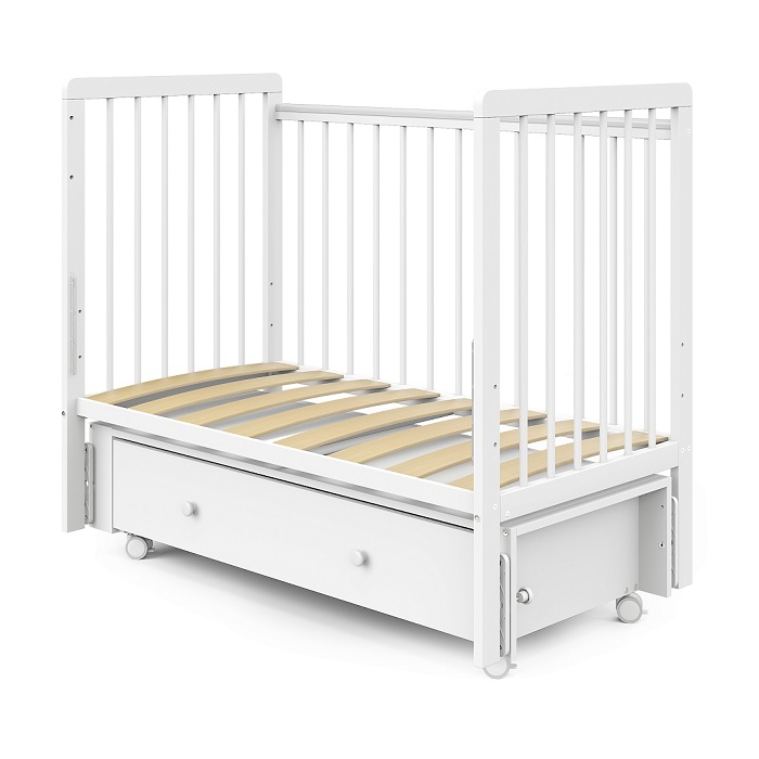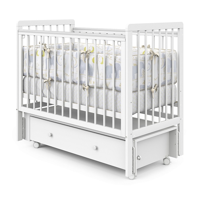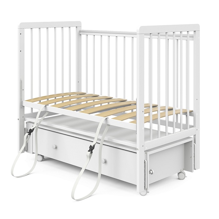 Кроватка оснащена колесами и маятником. Колеса позволят легко перемещать кроватку по комнате. Колеса прорезиненные и бесшумные. Маятник продольного качания (голова -ножки) позволит помочь ребенку успокоиться, настроиться на сон и крепче спать, без укачиваний на ручках. Когда маятник не нужен, он надежно фиксируется.