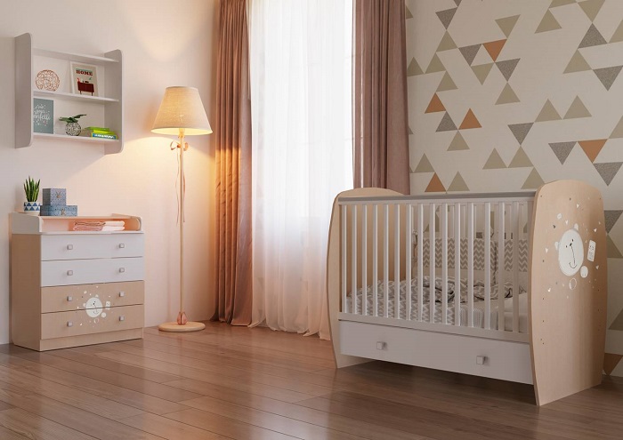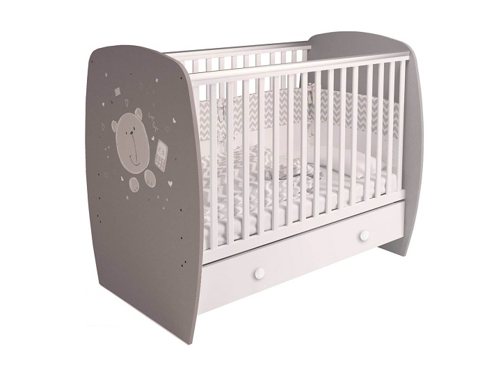 Кроватка из коллекции Teddy украшена рисунком милого медвежонка.