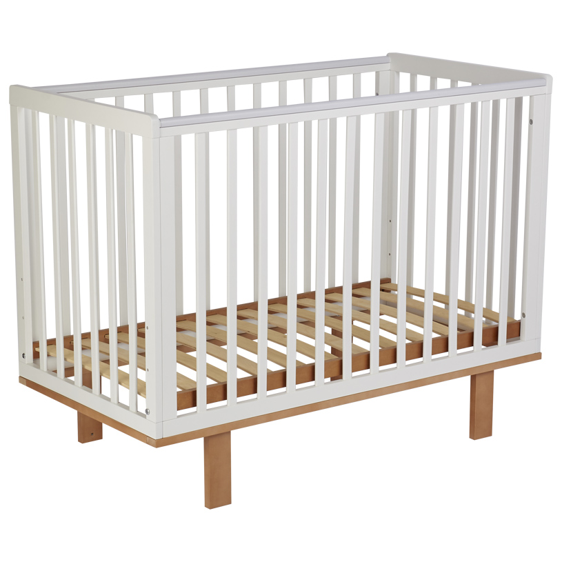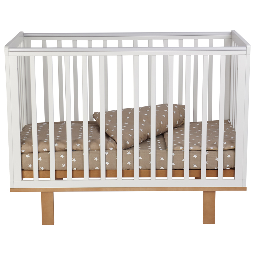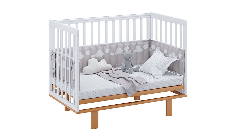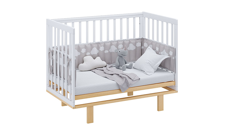 Polini kids Simple 340 (полини кидс симпл 340) - детская кровать в скандинавском стиле для ребенка с рождения до 3 лет. Ни каких лишних деталей, только правильные формы, оригинальное сочетание деревянных элементов. Кроватка смотрится очень элегантно и отлично впишется в любую дизайнерскую задумку. За счет отсутствия лишнего декора и деталей, кроватка не занимает много места, очень компактная и удобная. Высота спального ложе регулируется по высоте в зависимости от возраста ребенка. Передний бортик можно полностью снять и использовать кровать как диванчик, или как приставную модель.