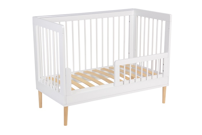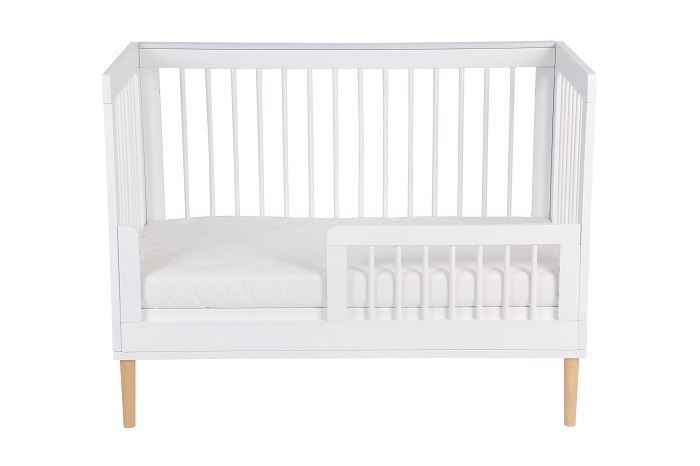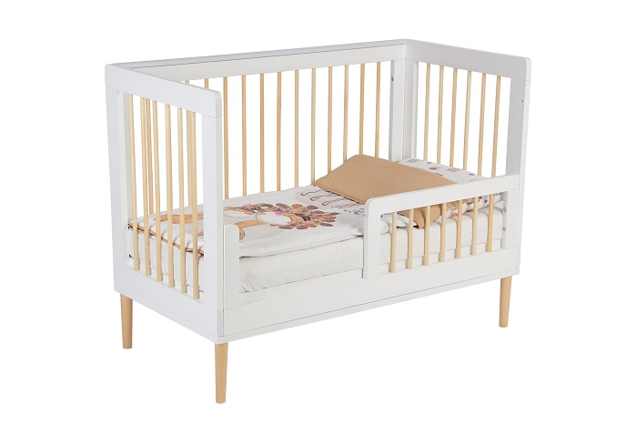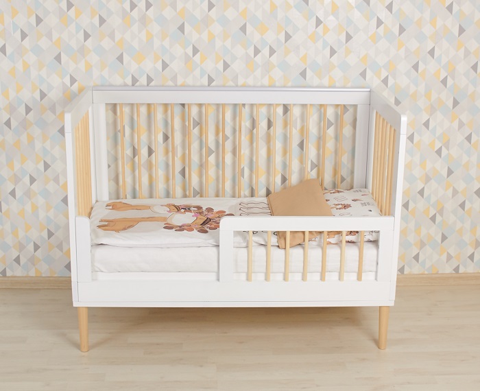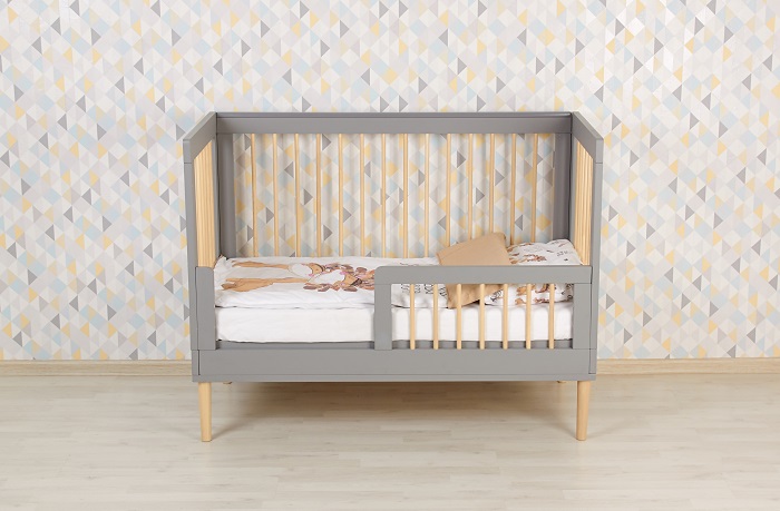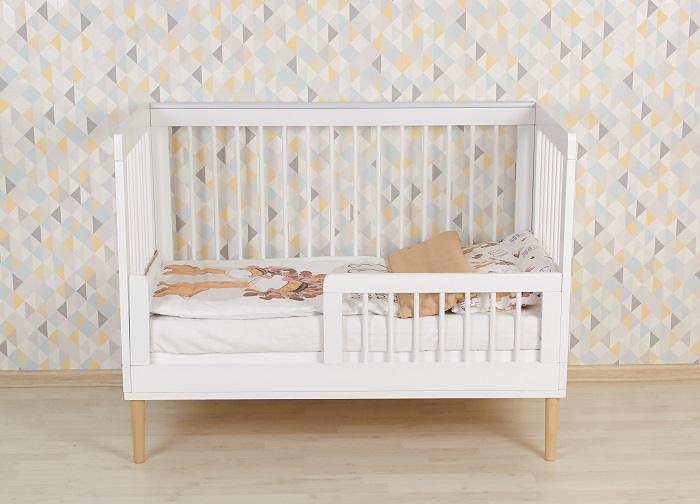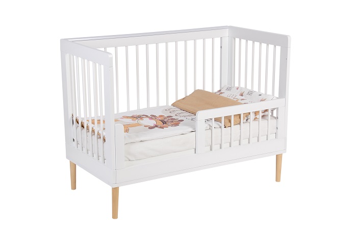 - Кроватка имеет продуманную конструкцию и позволяет постепенно приучать ребенка к самостоятельному сну благодаря наличию в комплекте малого бокового ограждения, которое устанавливается на изделие с помощью винтов и защищает малыша от падения.