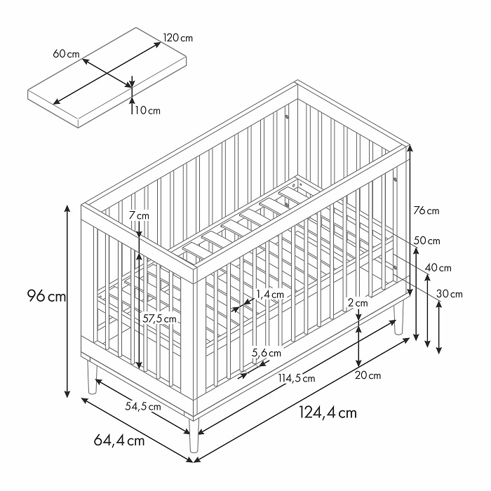 - Кроватка имеет три уровня высоты ложа от пола: 50 см, для малышей от 0 до 3 месяцев, 40 см, для малышей от 3 до 6 месяцев, 30 см, для малышей от 6 до 36 месяцев.