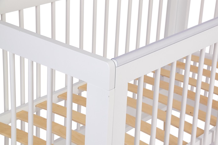 - На боковых стенках предусмотрены накладки ПВХ «грызунки», защищающие малыша от травм десен и зубов, а кроватку — от износа.