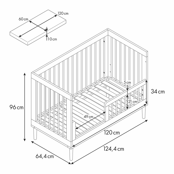 - Размер спального места 120х60 см (матрас покупается отдельно)