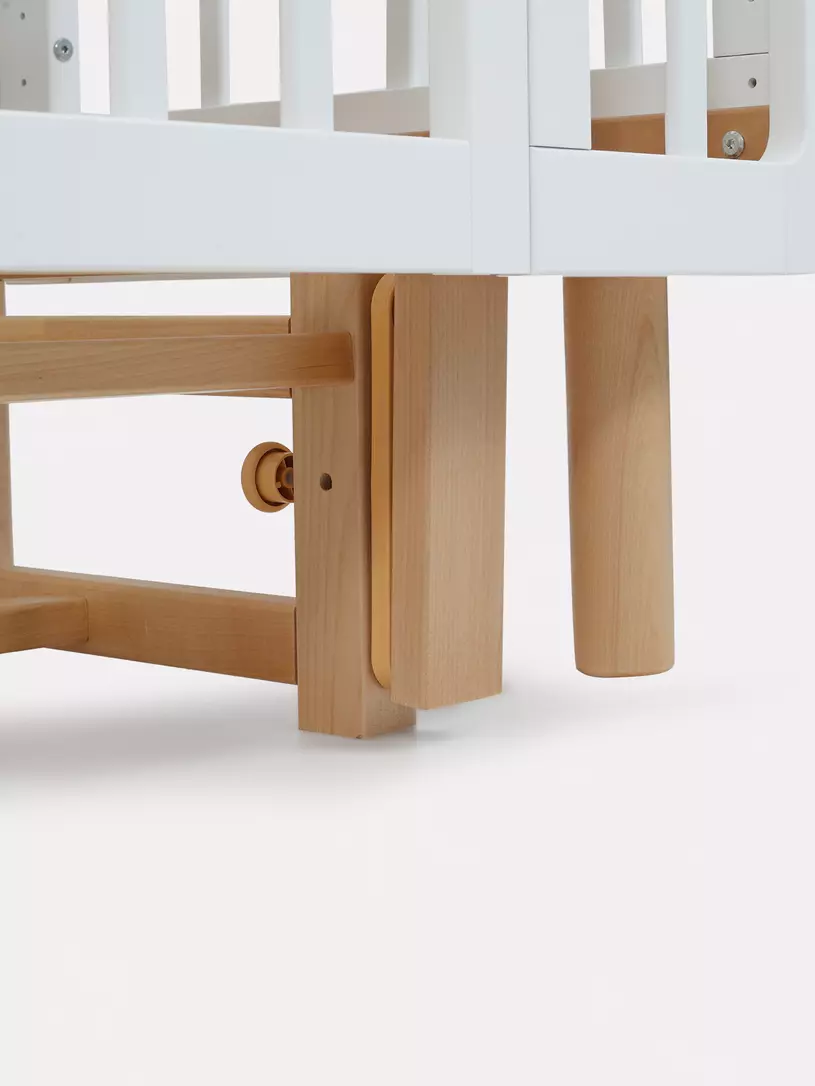 Универсальный маятник с плавным качанием позволит родителям более спокойно укладывать ребенка спать. Мягкое, бесшумное качание, благотворно влияет на ребенка, помогая успокоиться, настроиться на сон и крепче спать. Во время бодрствования кроватка надежно фиксируется стопором.
