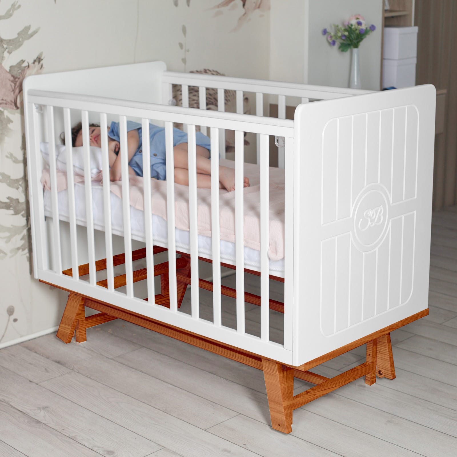 Детская кровать Sweet Baby Nuovo (Свит беби Нуово) - стильная кроватка от итальянских дизайнеров, которая позволит не только обеспечить ребенка качественным и безопасным спальным местом, но и украсит любой интерьер. Кроватка выполнена в минималистичном скандинавском стиле в 4 расцветках: это и классические расцветки белый, белый с серым, и интересные и необычные цвета как кашемир или, популярная на данный момент, расцветка белый - натуральный. Кроватка достаточно компактная и прекрасно впишется даже в небольшое пространство.