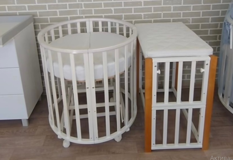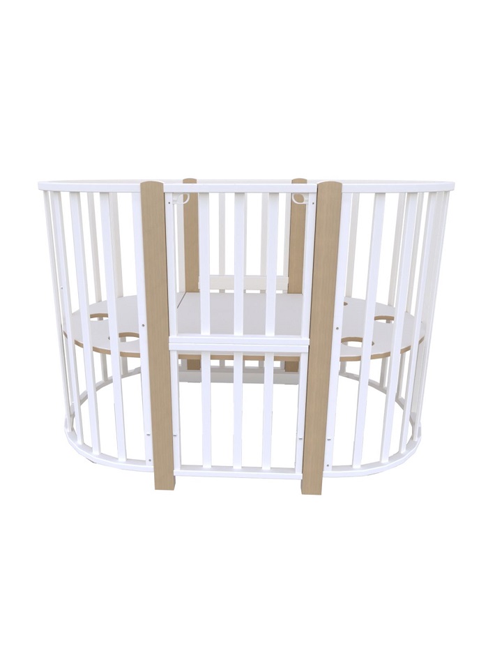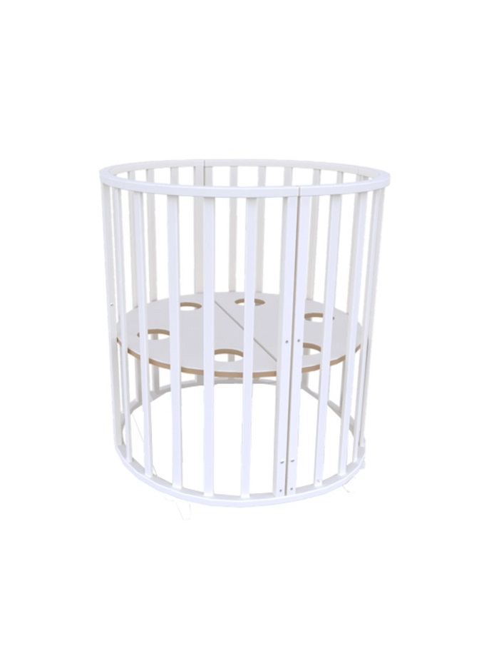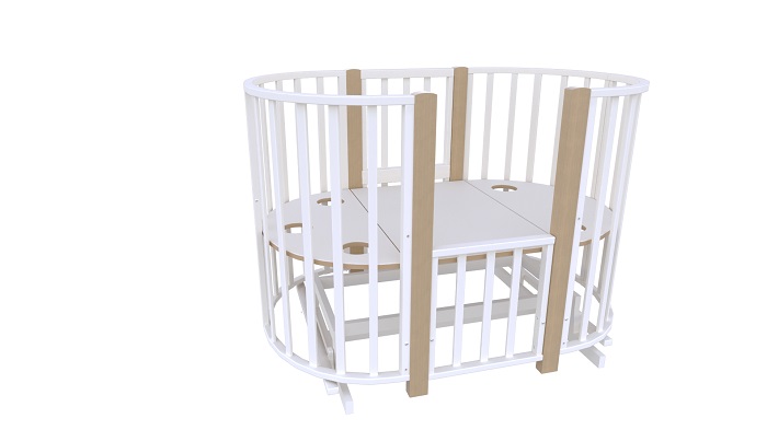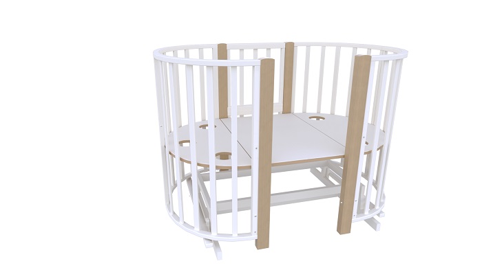 - При трансформации модели в круглую кроватку, из оставшихся деталей можно собрать пеленальный столик с одной полкой.