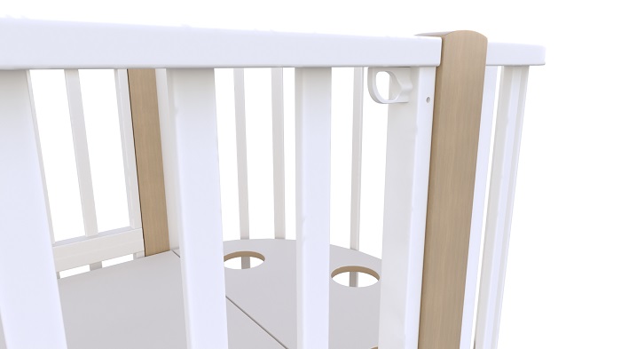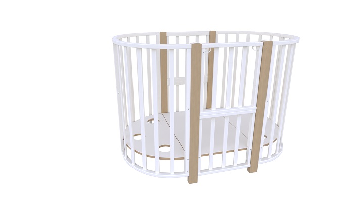 Кроватка изготовлена из экологичный древесины, а ее радиусы соединяются между собой стойками из натурального массива бука. Благодаря этому, кроватка становится очень прочной и надежной.