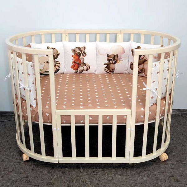 - Овальная кроватка на колесах (75*125 см) с маятником и без маятника