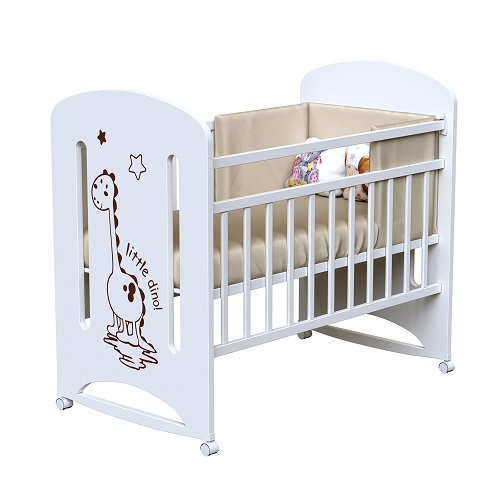 Кровать ВДК DINO колесо-качалка (Дино) - красивая кроватка для ребенка с рождения до 3-4 лет. Модель выполнена из березы и украшена фигурными боковинами с рисунком ( на одной стороне) . Такая кроватка украсит детскую комнату ребенка и станет прекрасным местом для спокойного и безопасного сна малыша.