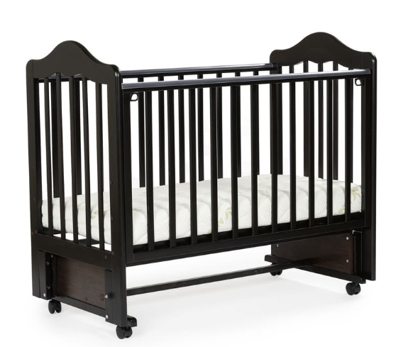 - Кроватка имеет четыре поворотных колеса, для перемещения кроватки в комнате;