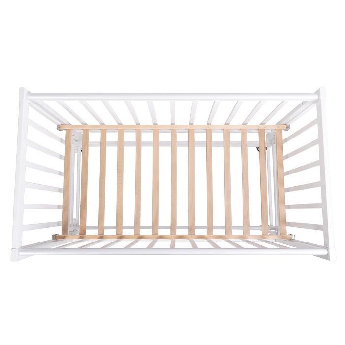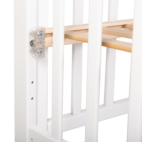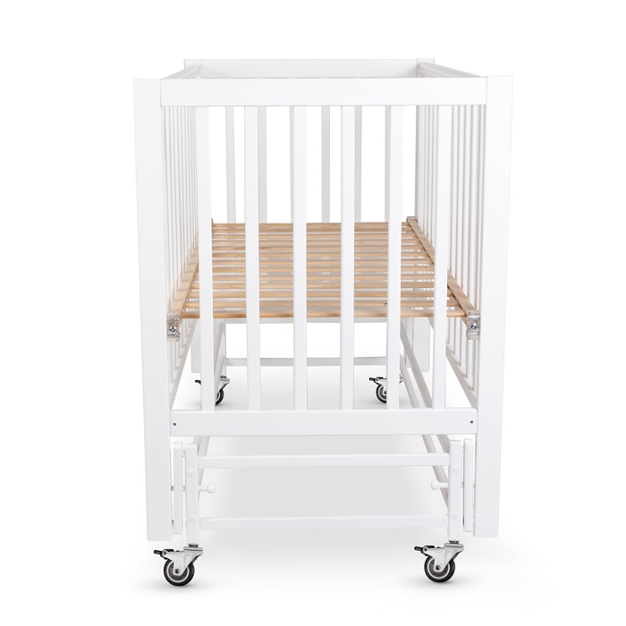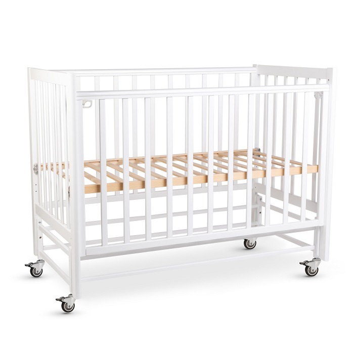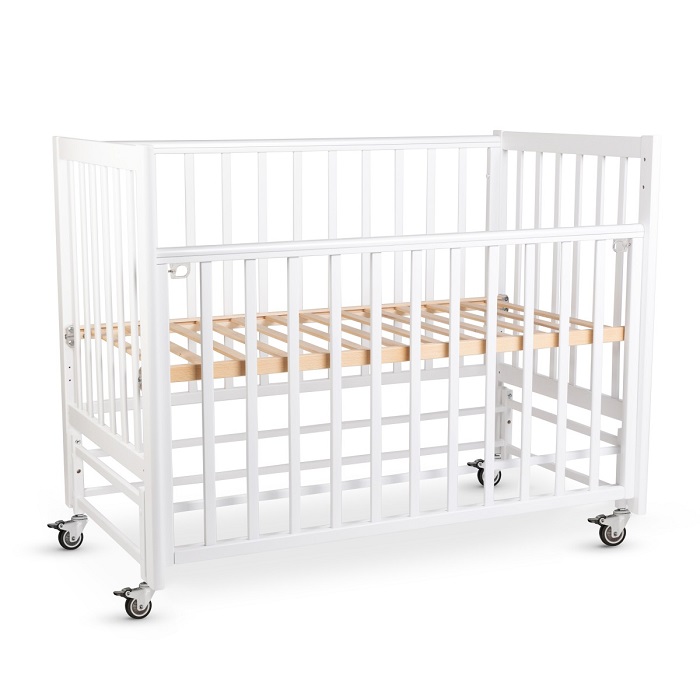 Передняя стенки кроватки легко регулируется по высоте в трех положениях и быстро снимается, без инструментов. Вы сможете в считанные секунды превратить кроватку в приставную, например, на ночной сон рядом с родителями, или в диванчик, для уже подросшего ребенка.