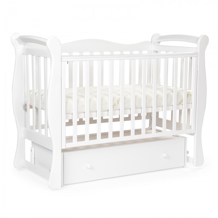 Детская кроватка Bebizaro Jameson с маятником и ящиком (бебизаро Джеймсон) - очень красивая кроватка из березы с большим функционалом и продуманная до мелочей. Элегантные изгибы и плавные линии делают кроватку идеальной для любой детской комнаты. Реечное регулируемое дно обеспечит кровати необходимую вентиляцию, а родителям удобный доступ к ребенку. У модели стандартные размеры спального места, что позволит без труда подобрать любой матрасик. Кровать оснащена универсальным маятником. В зависимости от установки кроватка будет плавно покачивать вдоль или поперек. При необходимости маятник надежно фиксируется. Под кроваткой предусмотрен вместительный ящик, который поможет в хранении детских вещей.