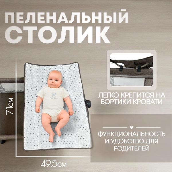 - Пеленальный столик удобно крепится к бортикам и облегчает ежедневный уход.