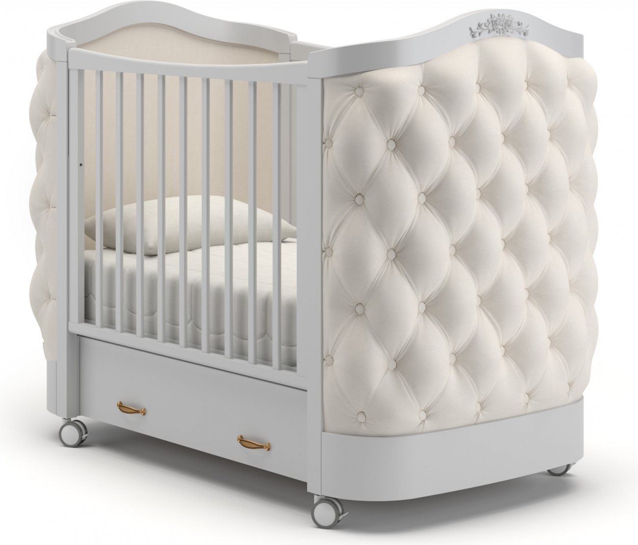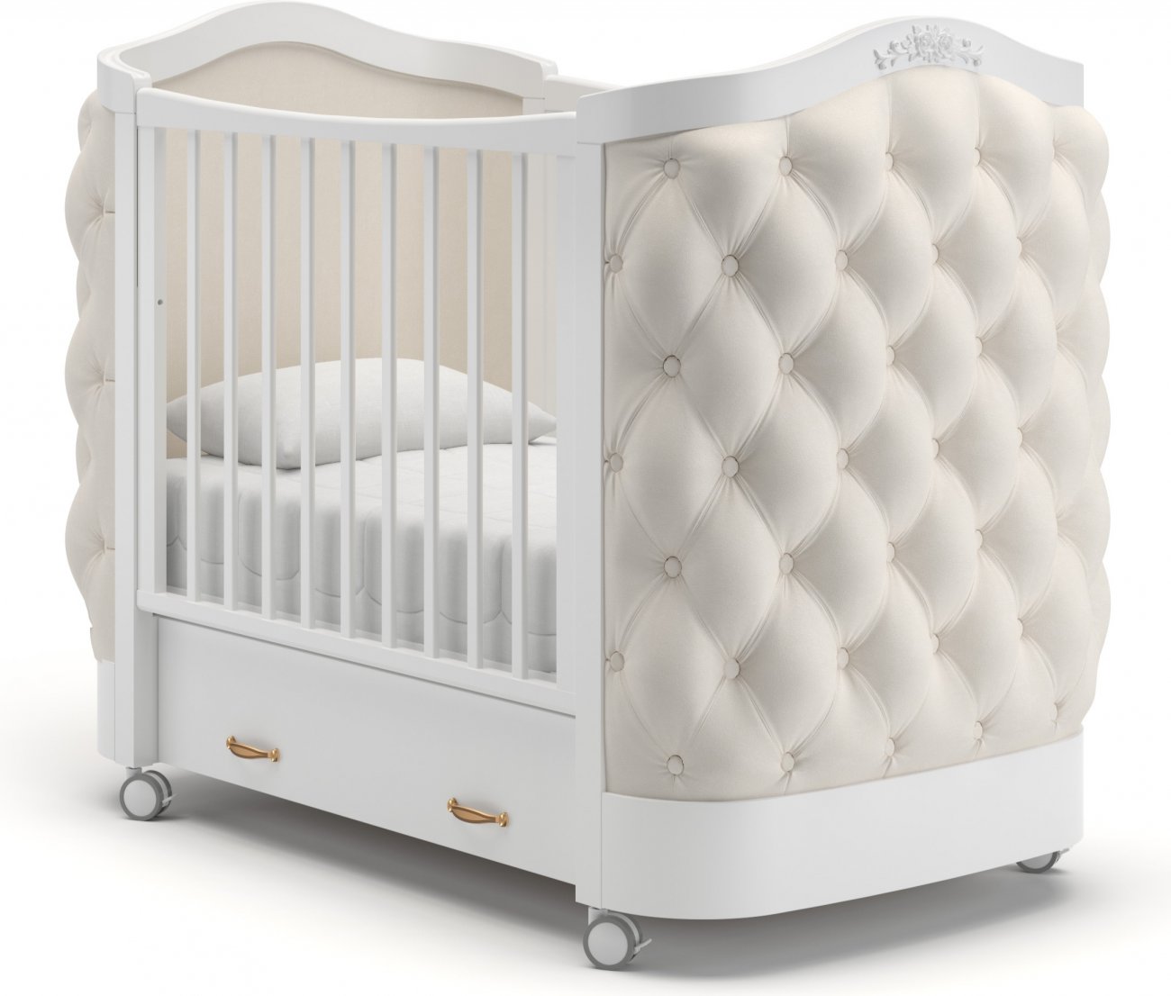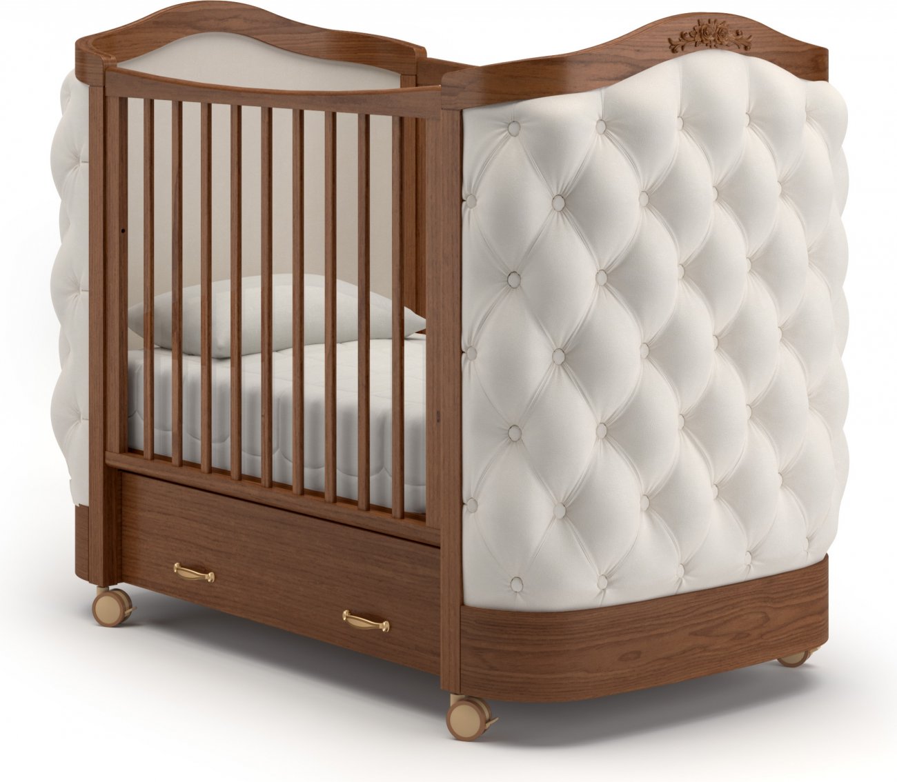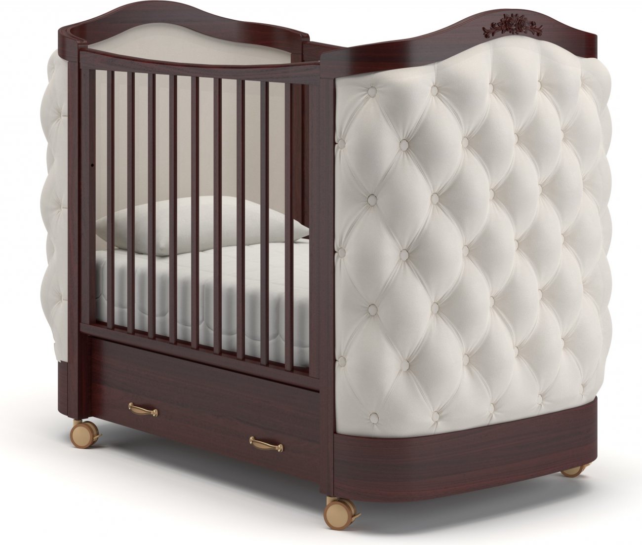Кровать Гандылян Тиффани Пуговицы (GANDYLYAN) - качественная и невероятно красивая кроватка из бука для ребенка с рождения до 3-4 лет с мягкими боковинами. Главным ее преимуществом являются очень красивые, роскошные, мягкие борта украшенные драпировкой и пуговками. Такая кровать смотрится очень нежно, элегантно и не оставит равнодушным не одну маму.